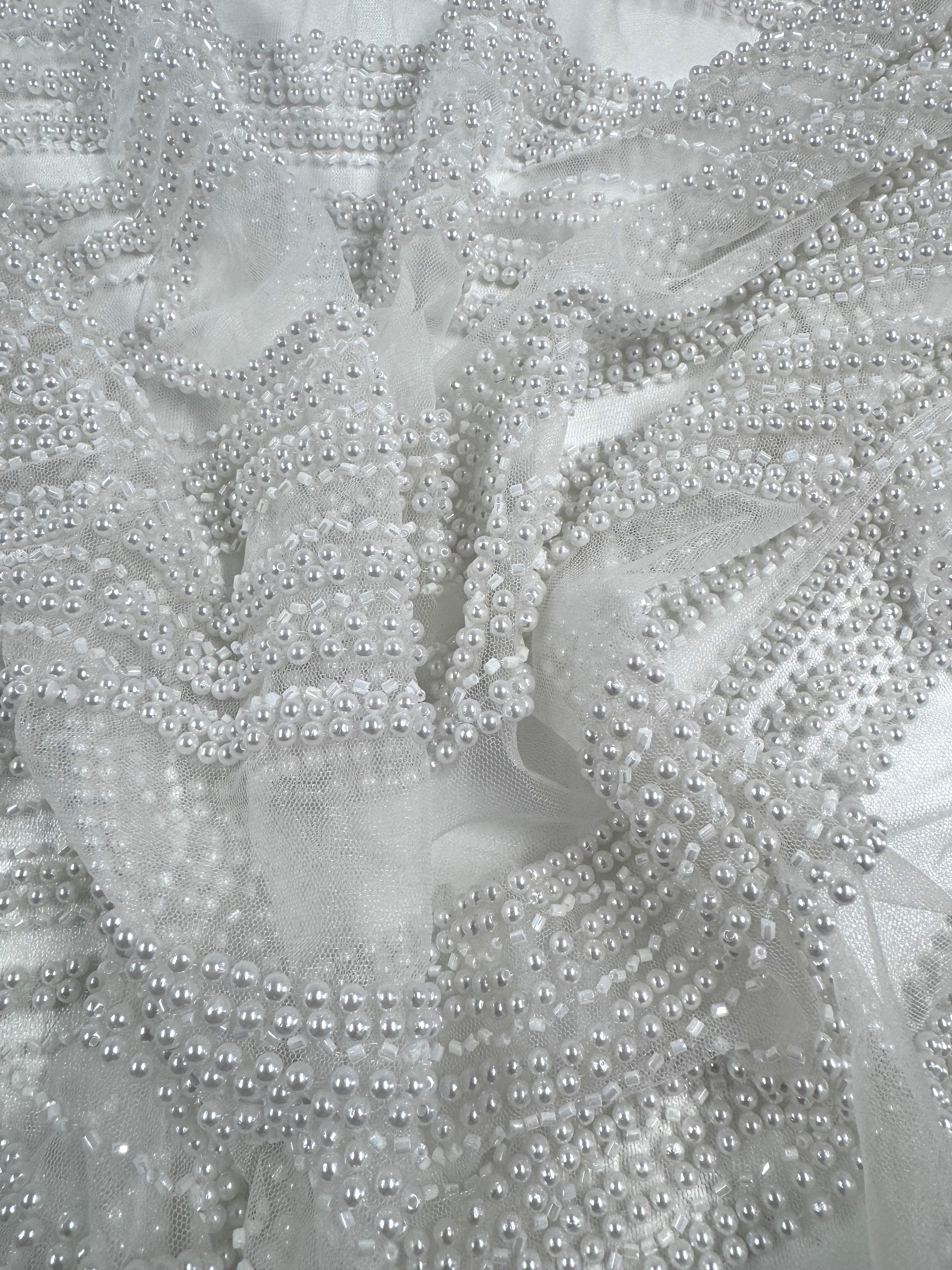 Beaded Lace fabrics are versatile and widely used in various applications. They are commonly found in bridal wear, clothing, home décor, accessories, costumes, bridal veils and lingerie. Lace adds elegance, femininity, and a touch of romance to any item it adorns, making it a popular choice for formal wear, bridal wear and special occasions.