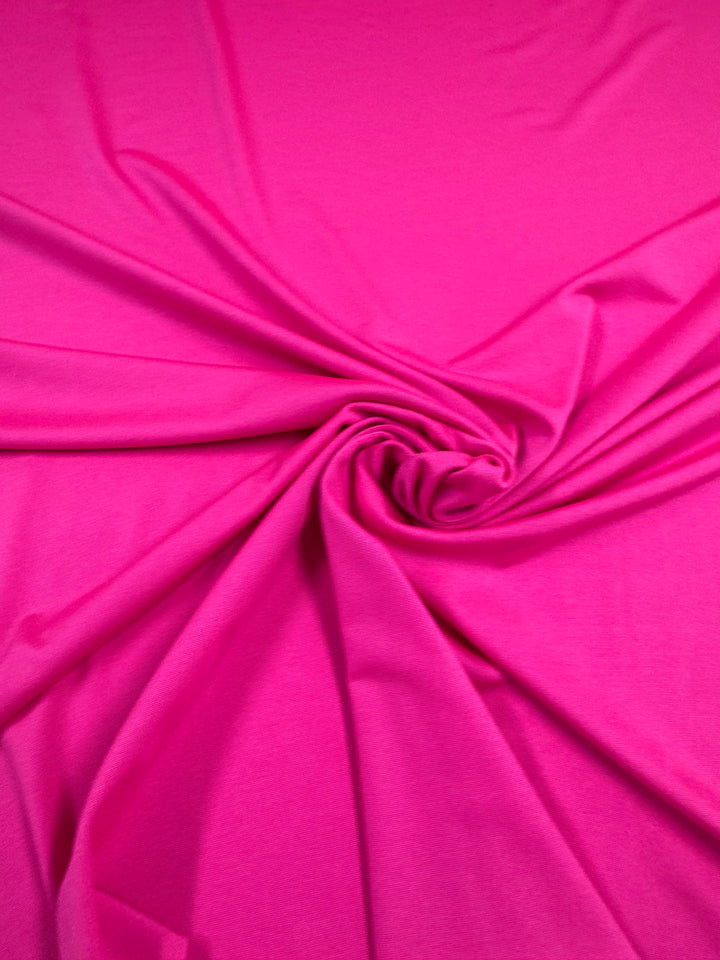 Interlock twist yarn fabric. This opaque fabric has been knit to have great elasticity and a soft touch. This medium weight fabric is the perfect weight for tops, dresses skirts and loose pants.