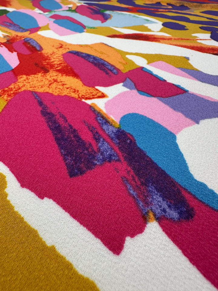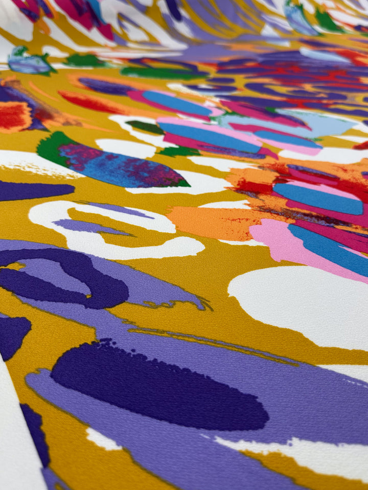 Our Printed Lycra is a Polyester/Spandex fabric that has a two-way stretch and comes in a variety of beautiful prints! Printed Lycra is a medium-weight fabric, has good durability and stretch, and washes well. Our Lycras are perfect for making tops, dresses, skirts, pants, accessories, and even childrenswear.