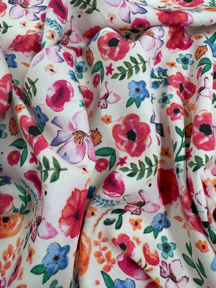 Our Designer Rayon showcases a beautiful and colourful fabric with vibrant prints that can be used for various purposes such as dresses, skirts, blouses, curtains, and more. Our collection showcases a soft, lightweight fabric with a smooth drape and a luxurious feel. Overall, rayon fabric offers both comfort and style, making it a versatile choice for any project. Midnight Tropic showcases an expressive leaf pattern in shades of cobalt, amber, and ivory layered over a rich navy base.