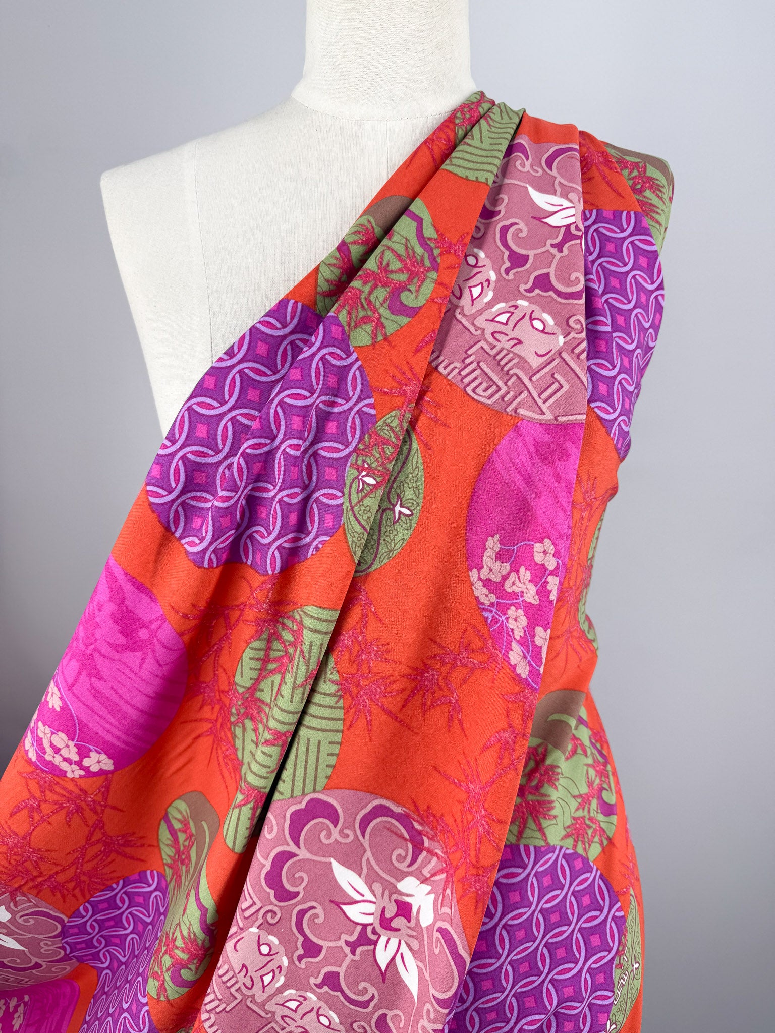 Our Designer Rayon showcases a beautiful and colourful fabric with vibrant prints that can be used for various purposes such as dresses, skirts, blouses, curtains, and more. Overall, rayon fabric offers both comfort and style, making it a versatile choice for any project.