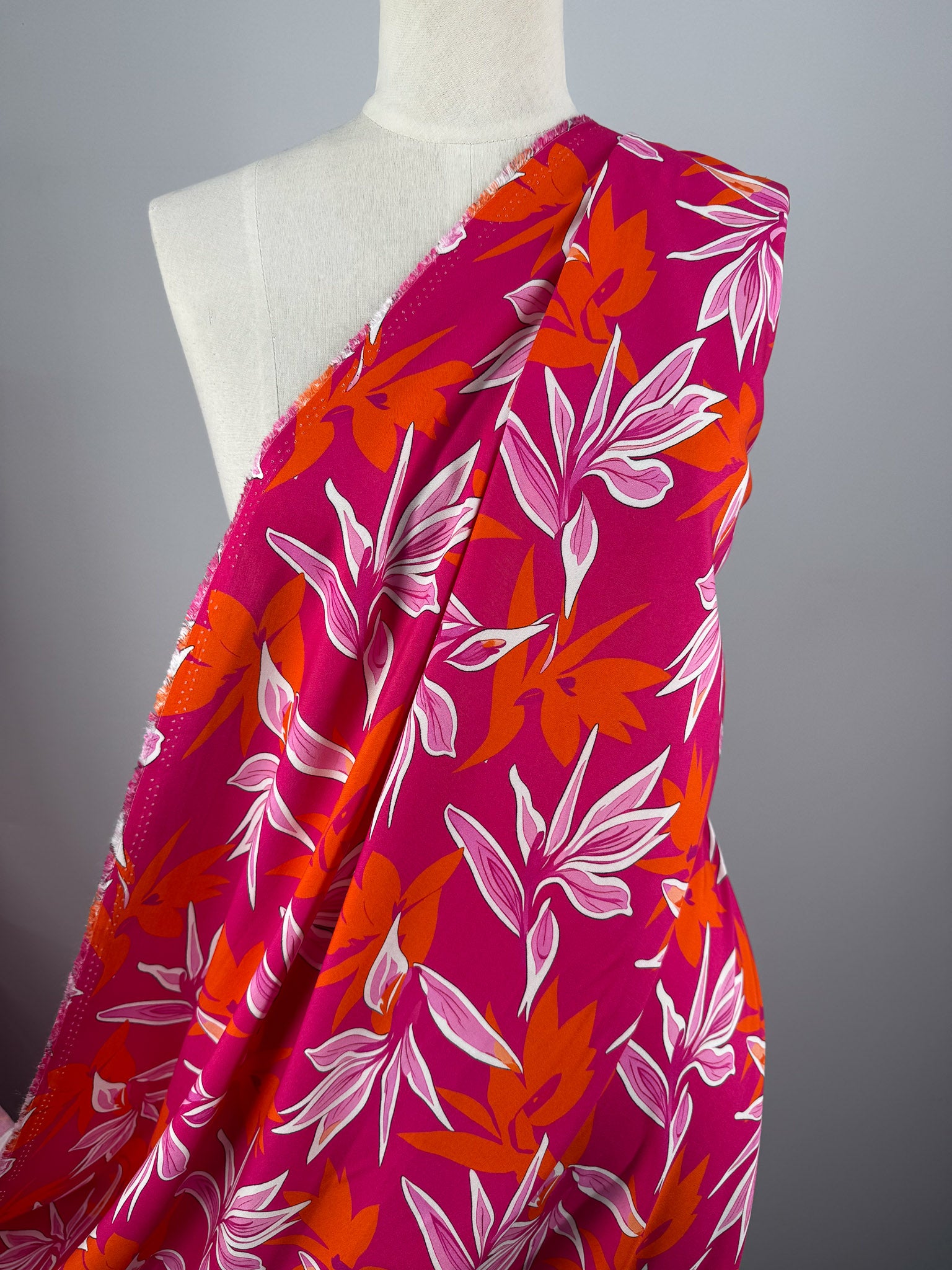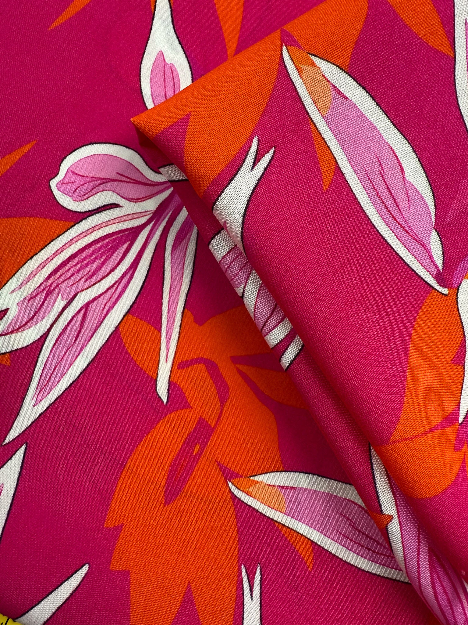 Our Designer Rayon showcases a beautiful and colourful fabric with vibrant prints that can be used for various purposes such as dresses, skirts, blouses, curtains, and more. Our collection showcases a soft, lightweight fabric with a smooth drape and a luxurious feel. Overall, rayon fabric offers both comfort and style, making it a versatile choice for any project.