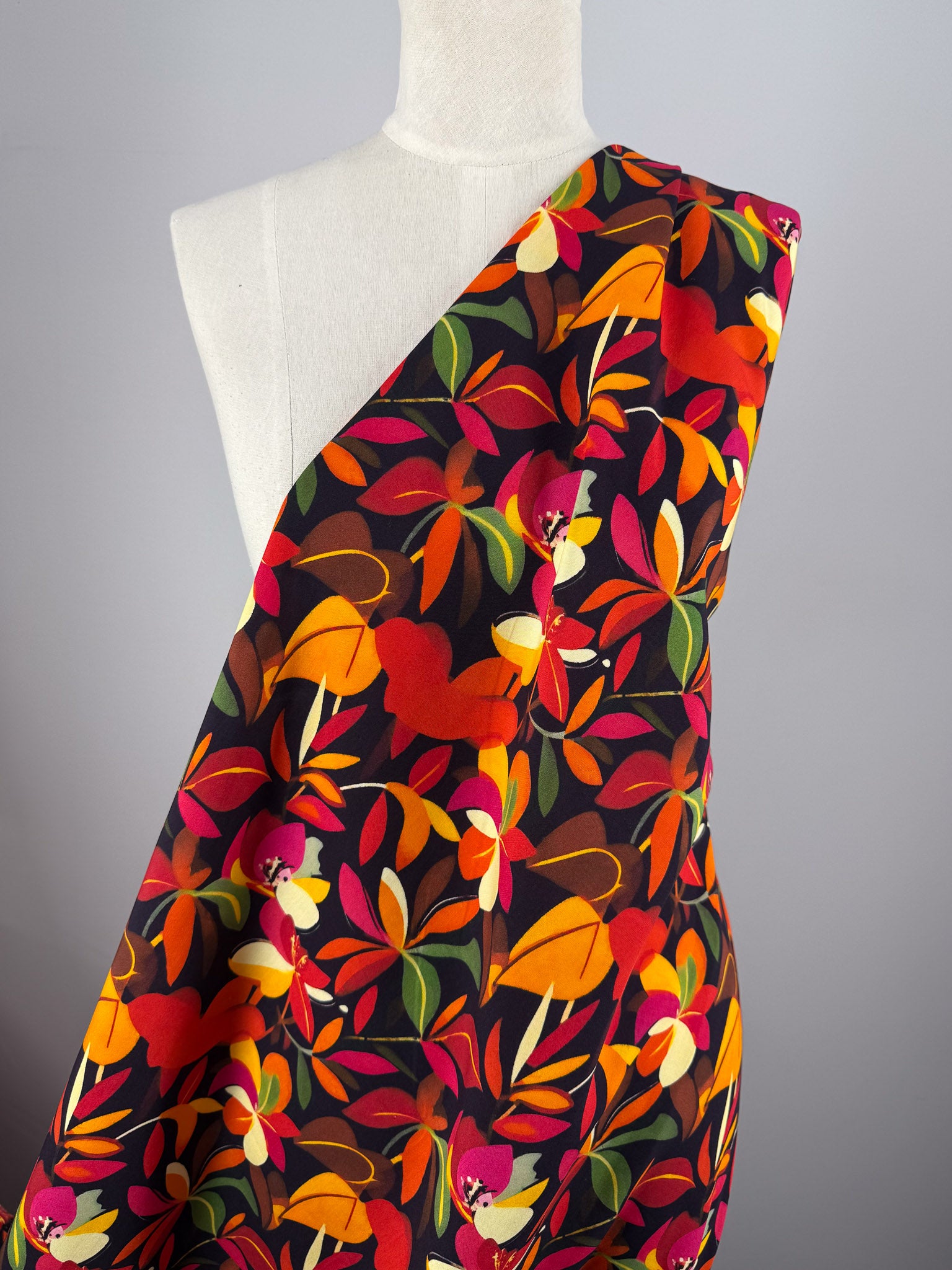 Our Designer Rayon showcases a beautiful and colourful fabric with vibrant prints that can be used for various purposes such as dresses, skirts, blouses, curtains, and more. Our collection showcases a soft, lightweight fabric with a smooth drape and a luxurious feel. Overall, rayon fabric offers both comfort and style, making it a versatile choice for any project.