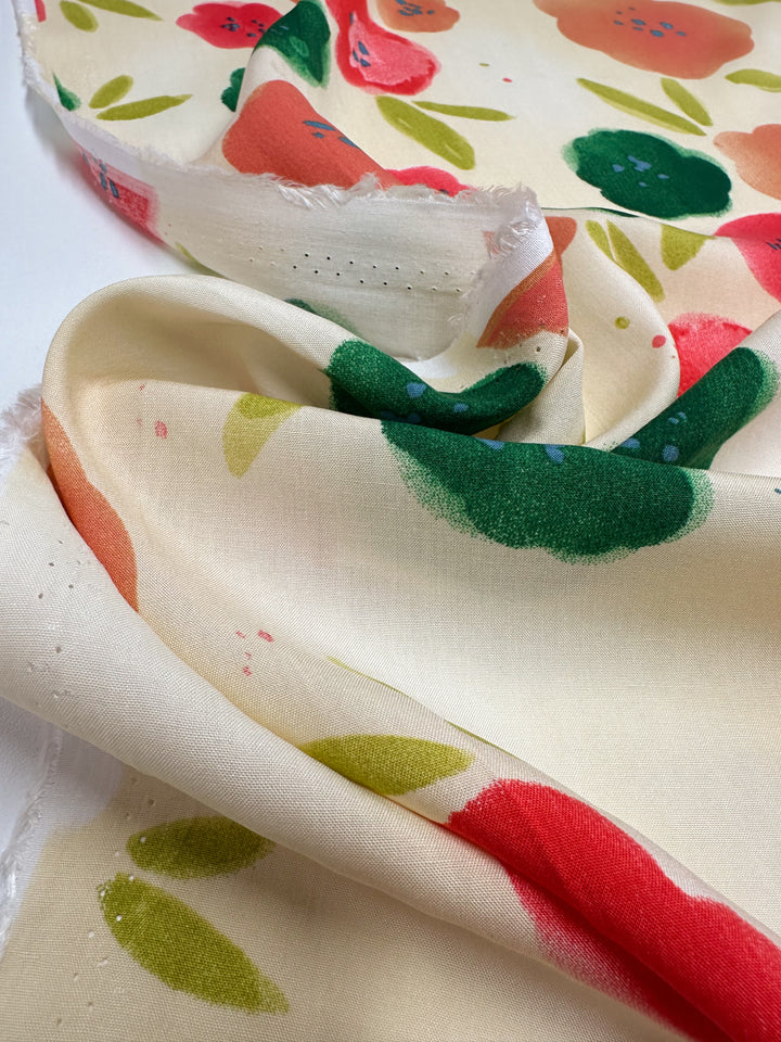 Our Designer Rayon showcases a beautiful and colourful fabric with vibrant prints that can be used for various purposes such as dresses, skirts, blouses, curtains, and more. Overall, rayon fabric offers both comfort and style, making it a versatile choice for any project.