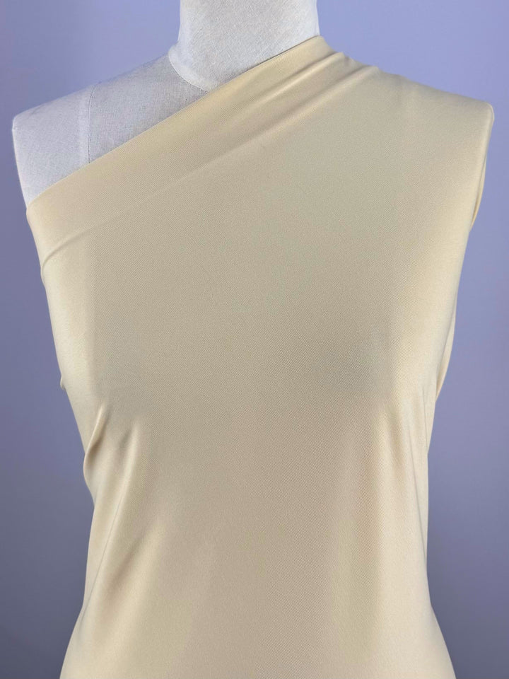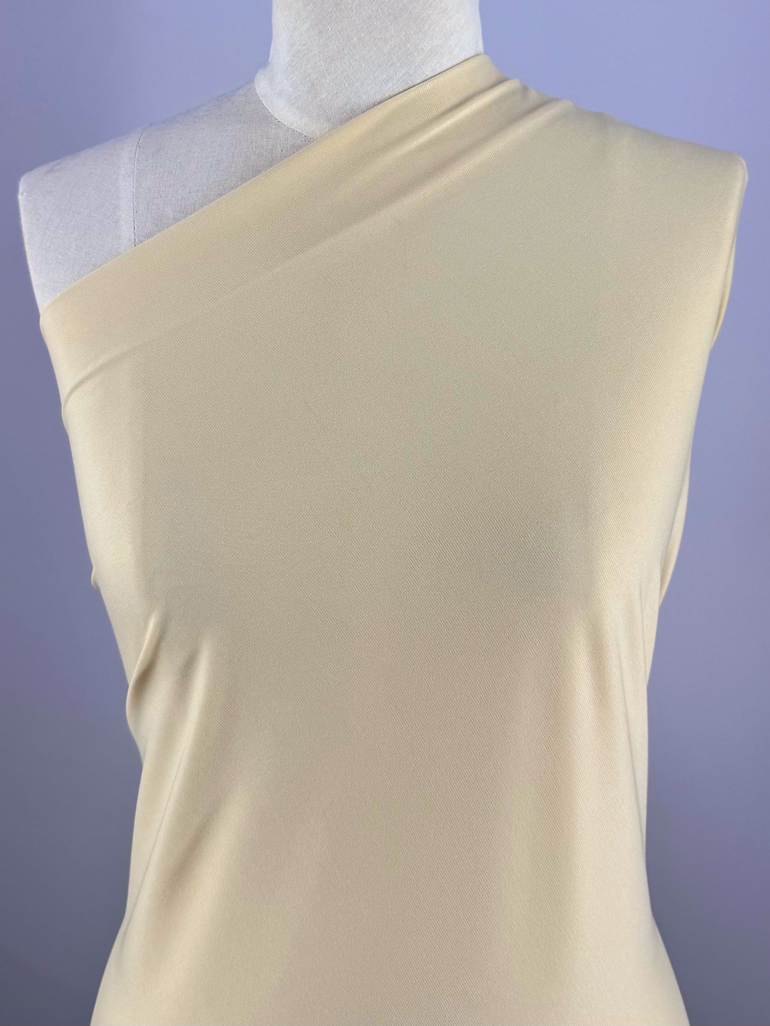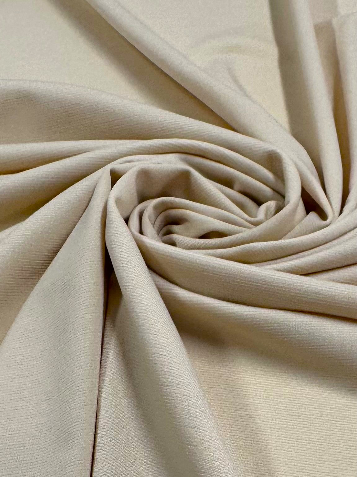 Interlock twist yarn fabric. This opaque fabric has been knit to have great elasticity and a soft touch. This medium weight fabric is the perfect weight for tops, dresses skirts and loose pants.
