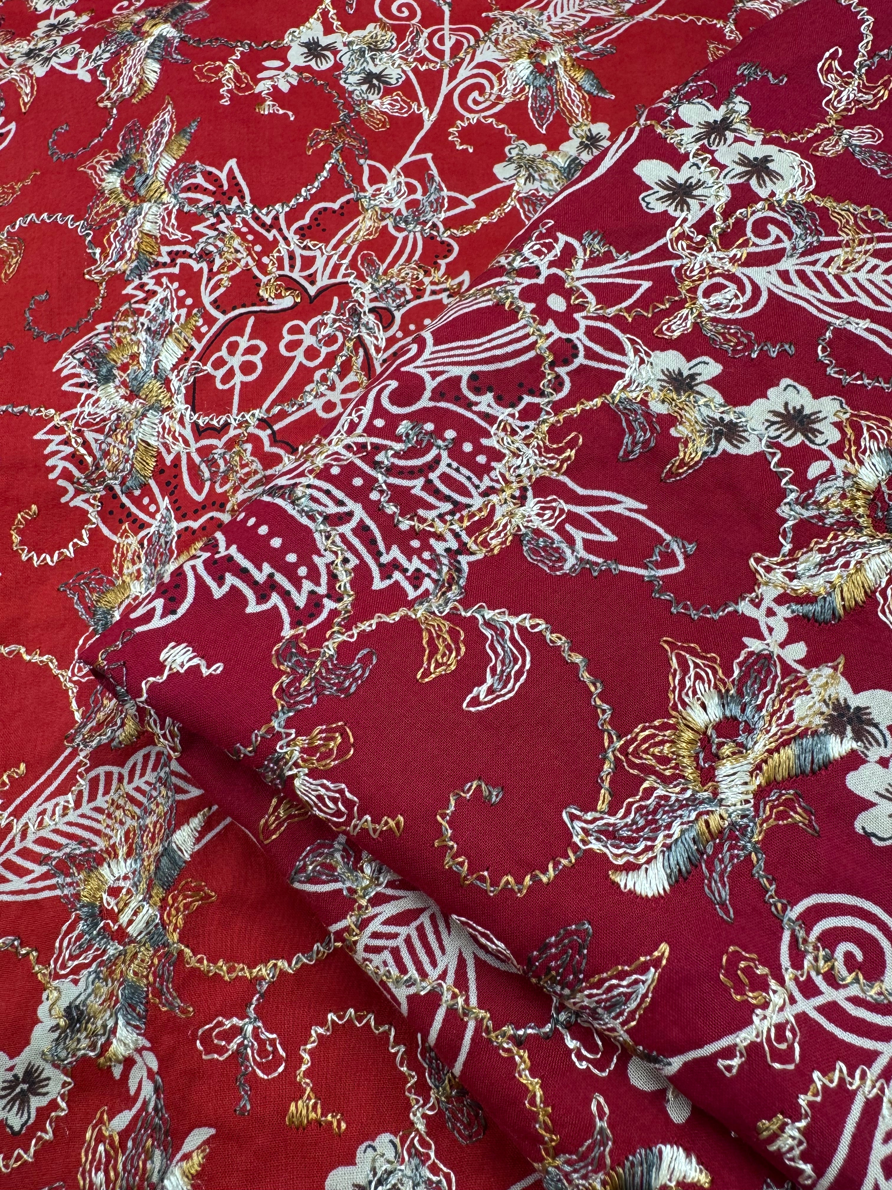 Japanese Broderie Anglaise- Red - 106cm