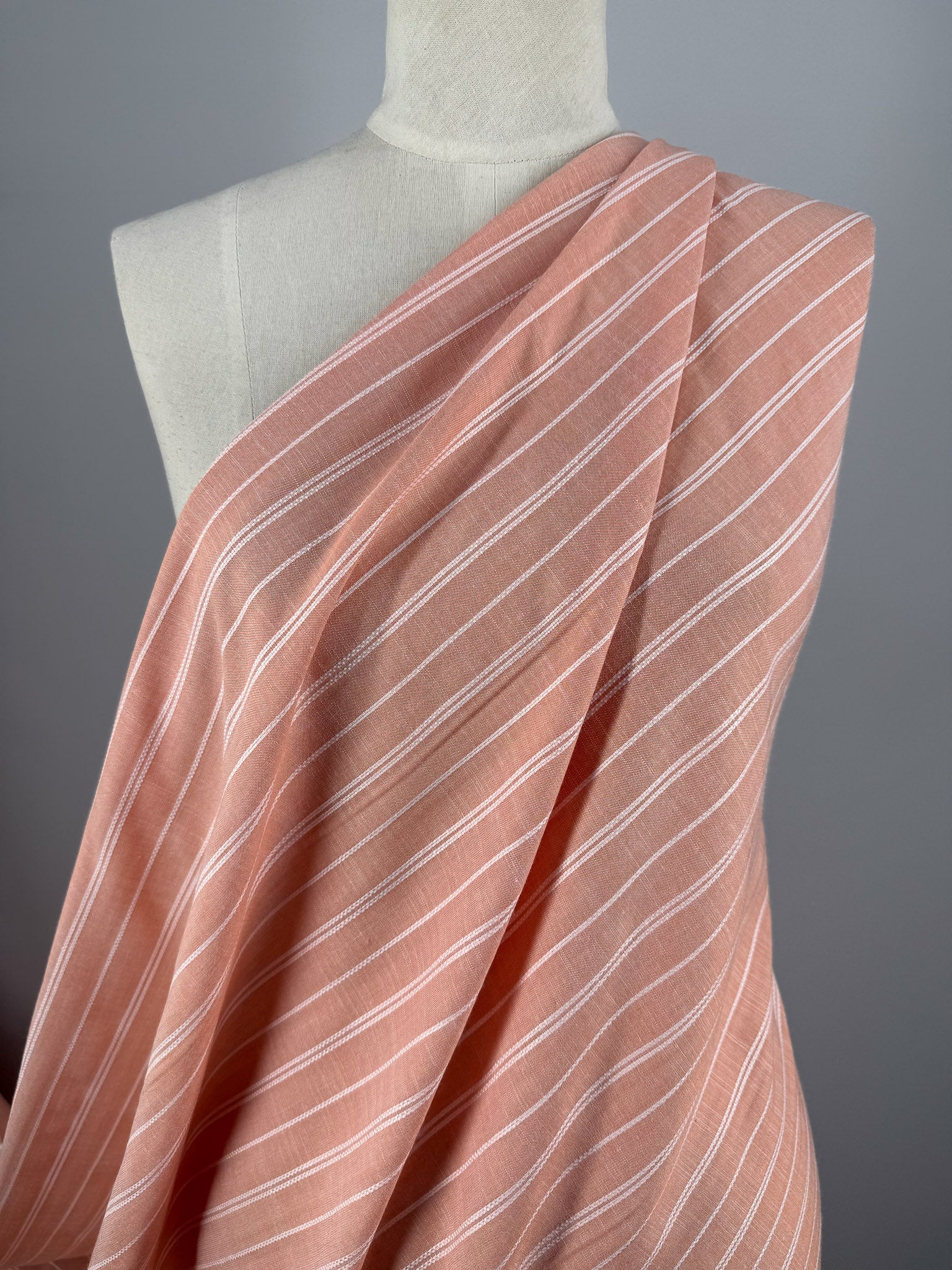 Linen Blend - Dusty Blush Ticking - 142cm