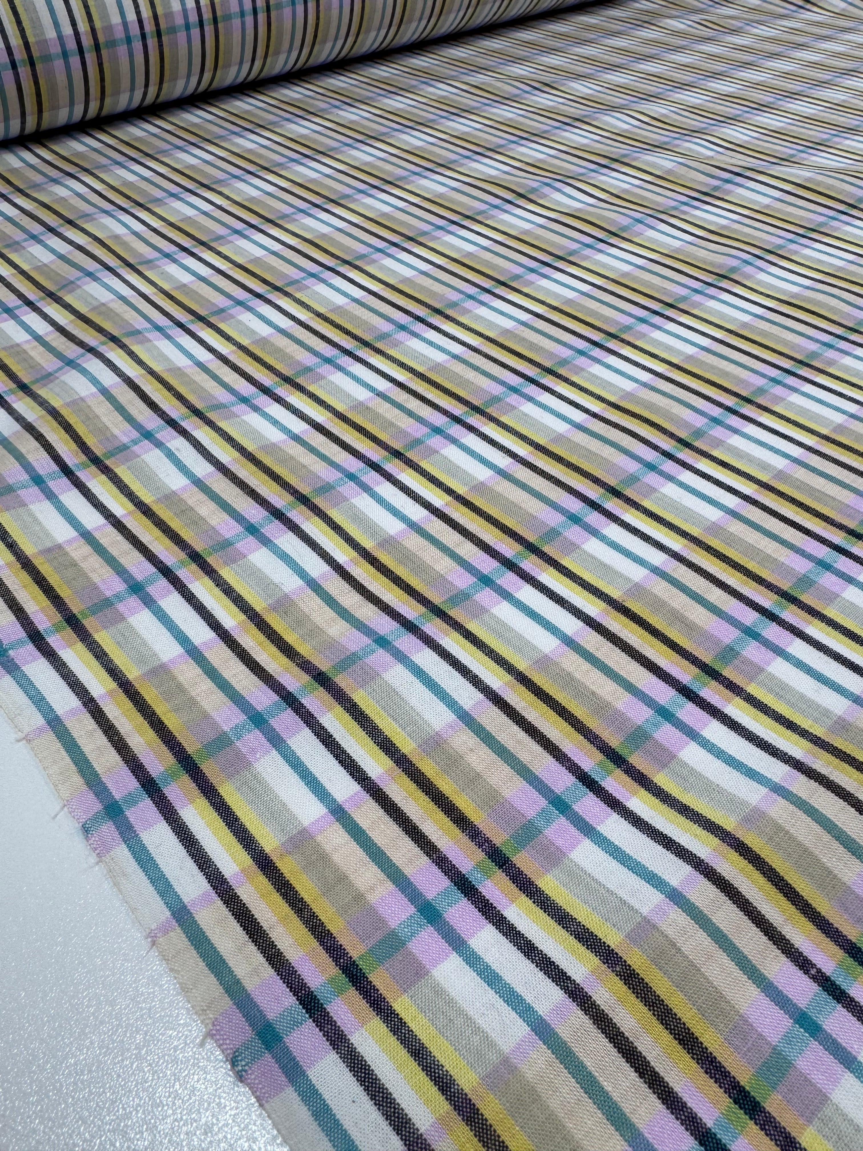 Linen Blend - Soft Pastel Check - 112cm