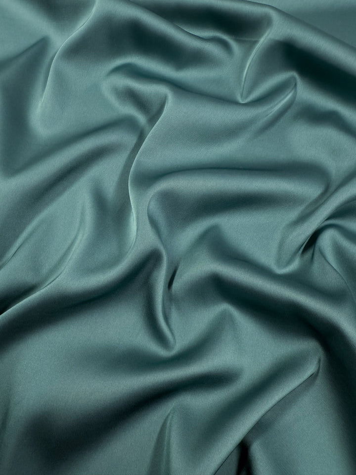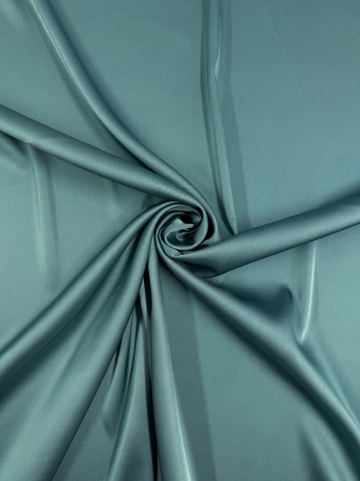 A matte, luxury fabric often used for nightgowns. Satin refers to the weave, not the textile, and most fabric characterised as satin has a soft, shiny yet matte finish. No spandex however this satin has some give.