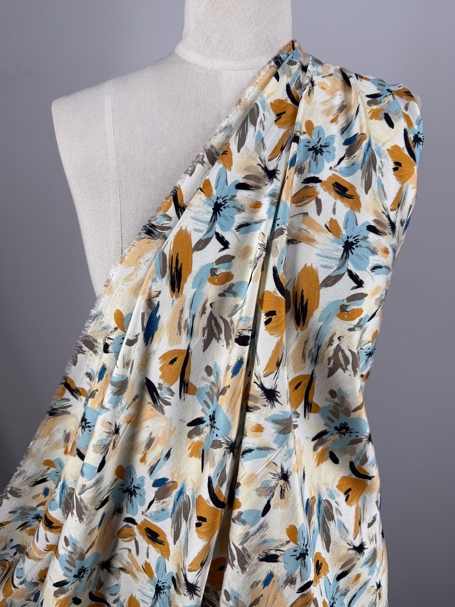 Our Mercerised Rayon offers a silky soft hand feel with a beautiful fluid drape, making it the ideal fabric for light weight garments. The mercerisation process enhances the rayon’s strength, lustre and print clarity, delivering rich colour, defined edges, and a subtle sheen. Naturally breathable and comfortable to wear, this fabric moves effortlessly with the body, perfect for dresses, blouses, skirts and resort-style pieces. Whether it’s bold geometrics, florals or abstract motifs, every print pops on this elevated base.