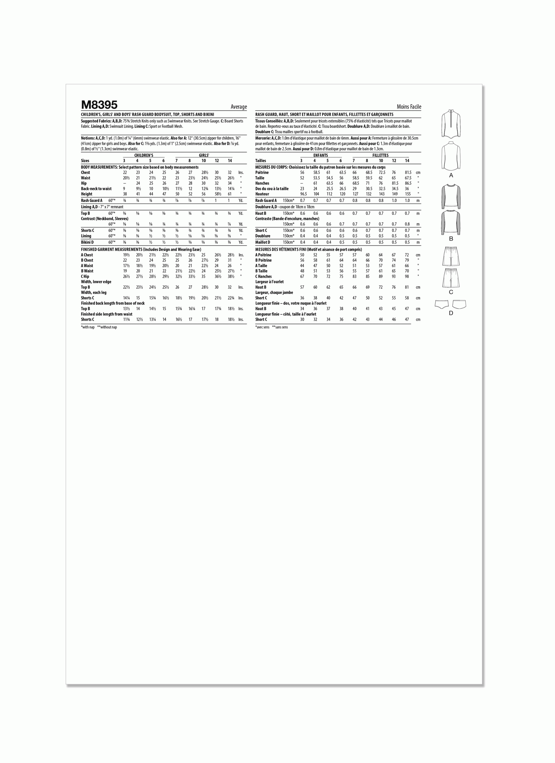 Pattern - Mccall's - M8395 - Children’s, Girls’ and Boys’ Rash Guard Bodysuit, Top, Shorts and Bikini