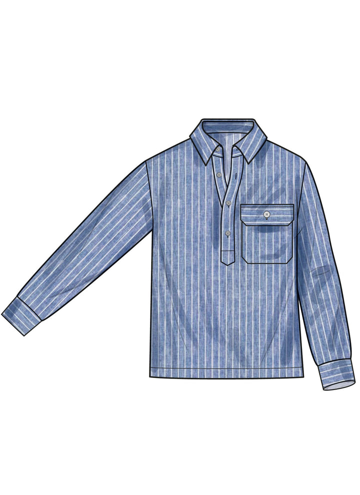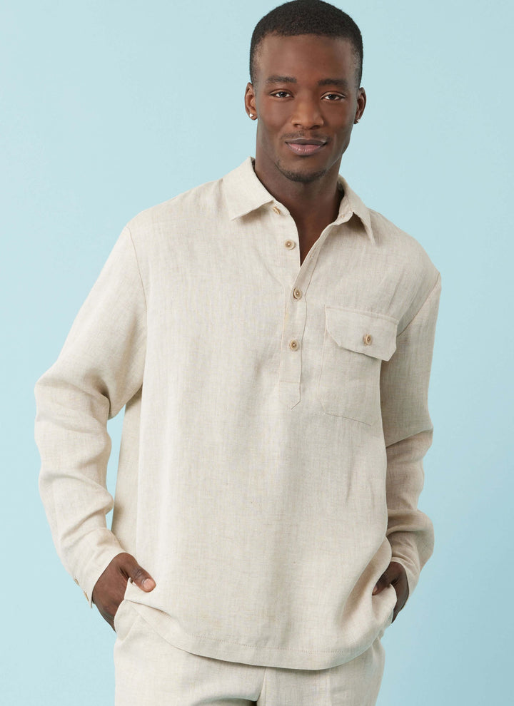 These versatile popover shirts, available with long or short sleeves, are thoughtfully designed for both style and ease. They feature a half placket for a relaxed look and easy wear, along with dropped shoulders and a back yoke that provide a comfortable, slightly oversized fit. A single patch chest pocket with a flap and button closure adds a practical and polished detail.