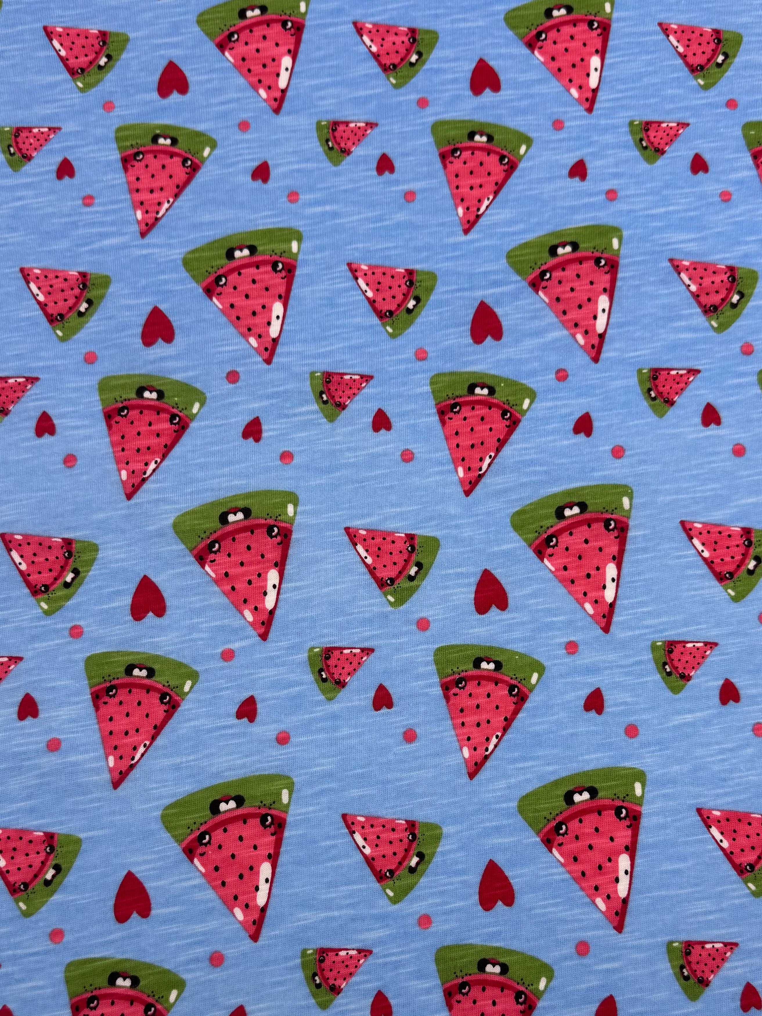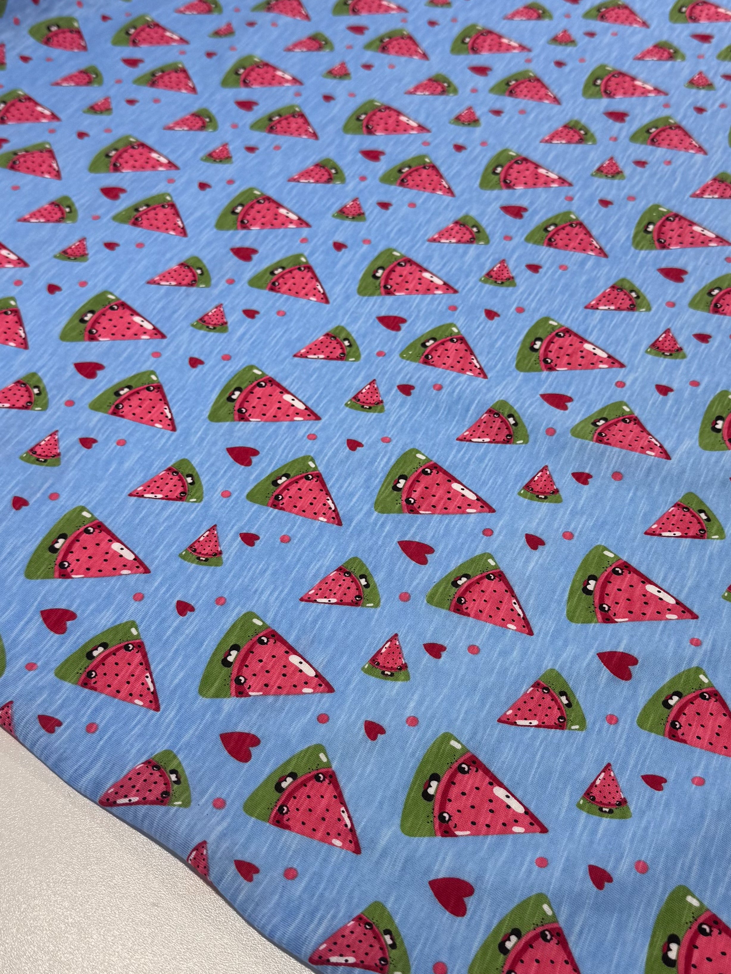 Our Printed Poly/ Cotton Jersey has a two-way stretch and comes in a variety of beautiful prints! Printed Jersey is a medium-weight fabric, has good durability and stretch, and washes well. Our Lycras are perfect for making tops, dresses, skirts, pants, accessories, and even childrenswear.