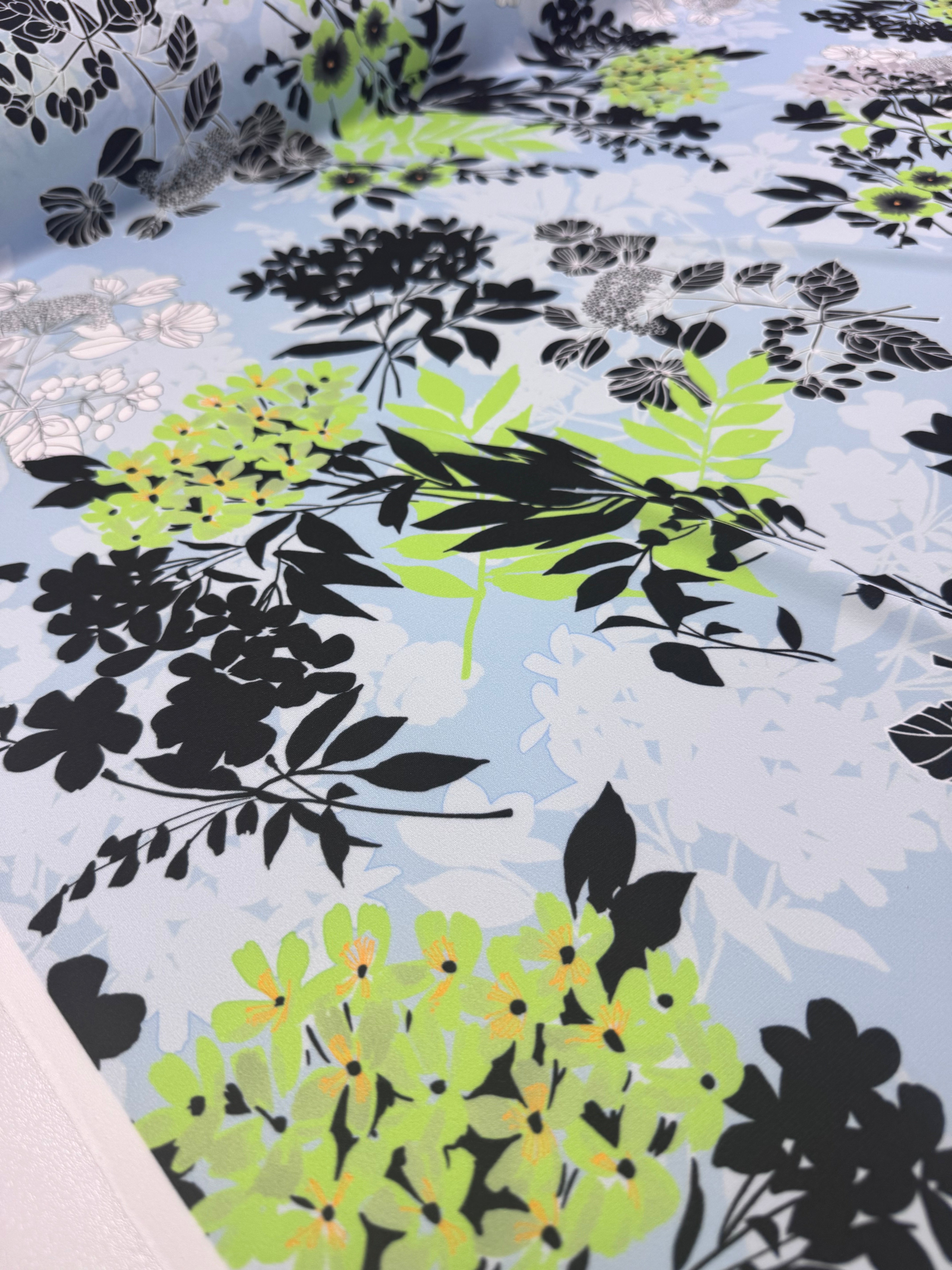 Our Printed Lycra is a Polyester/Spandex fabric that has a two-way stretch and comes in a variety of beautiful prints! Printed Lycra is a medium-weight fabric, has good durability and stretch, and washes well. Our Lycras are perfect for making tops, dresses, skirts, pants, accessories, and even childrenswear.