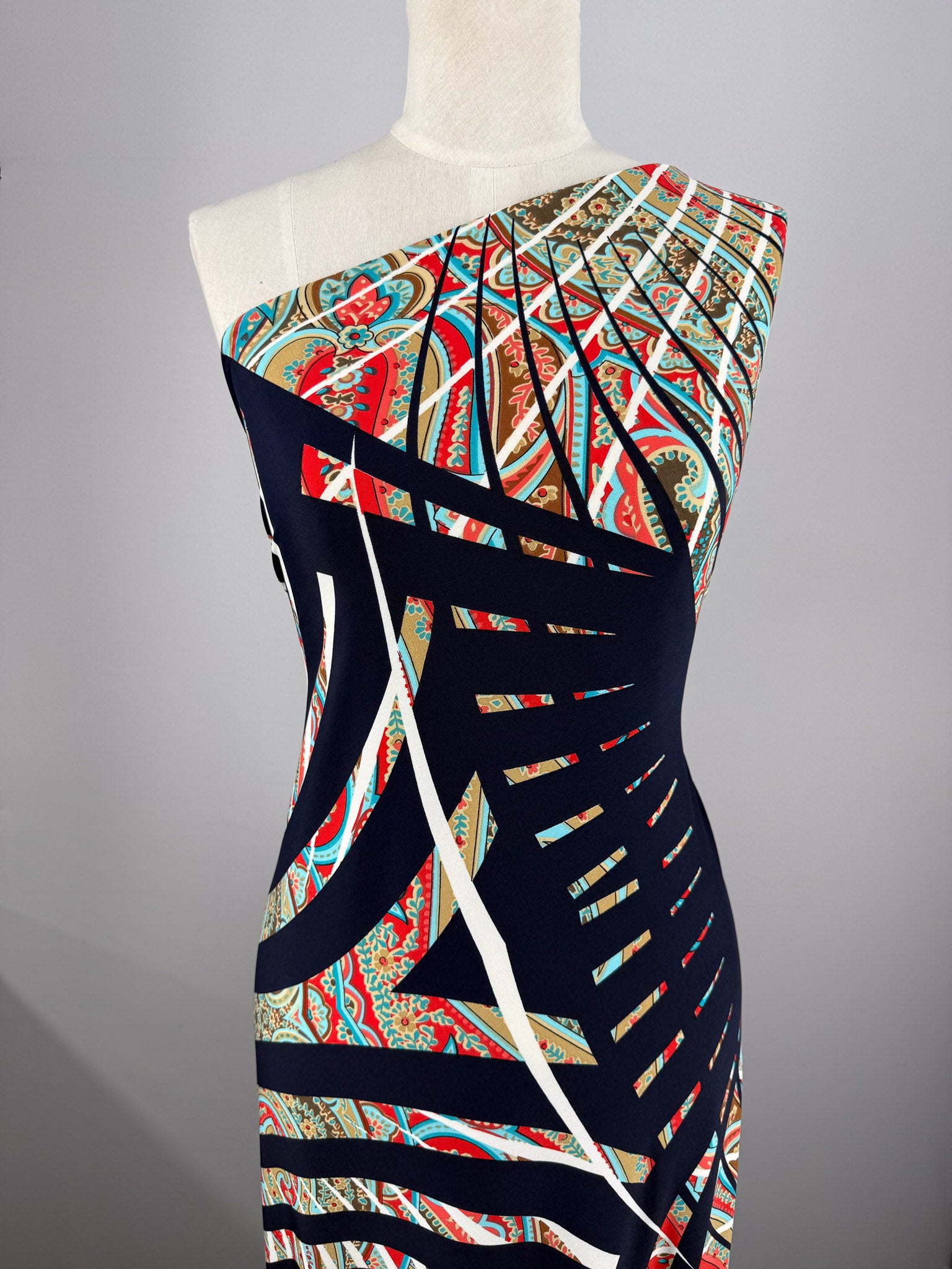 Our Printed Lycra is a Polyester/Spandex fabric that has a two-way stretch and comes in a variety of beautiful prints! Printed Lycra is a medium-weight fabric, has good durability and stretch, and washes well. Our Lycras are perfect for making tops, dresses, skirts, pants, accessories, and even childrenswear.