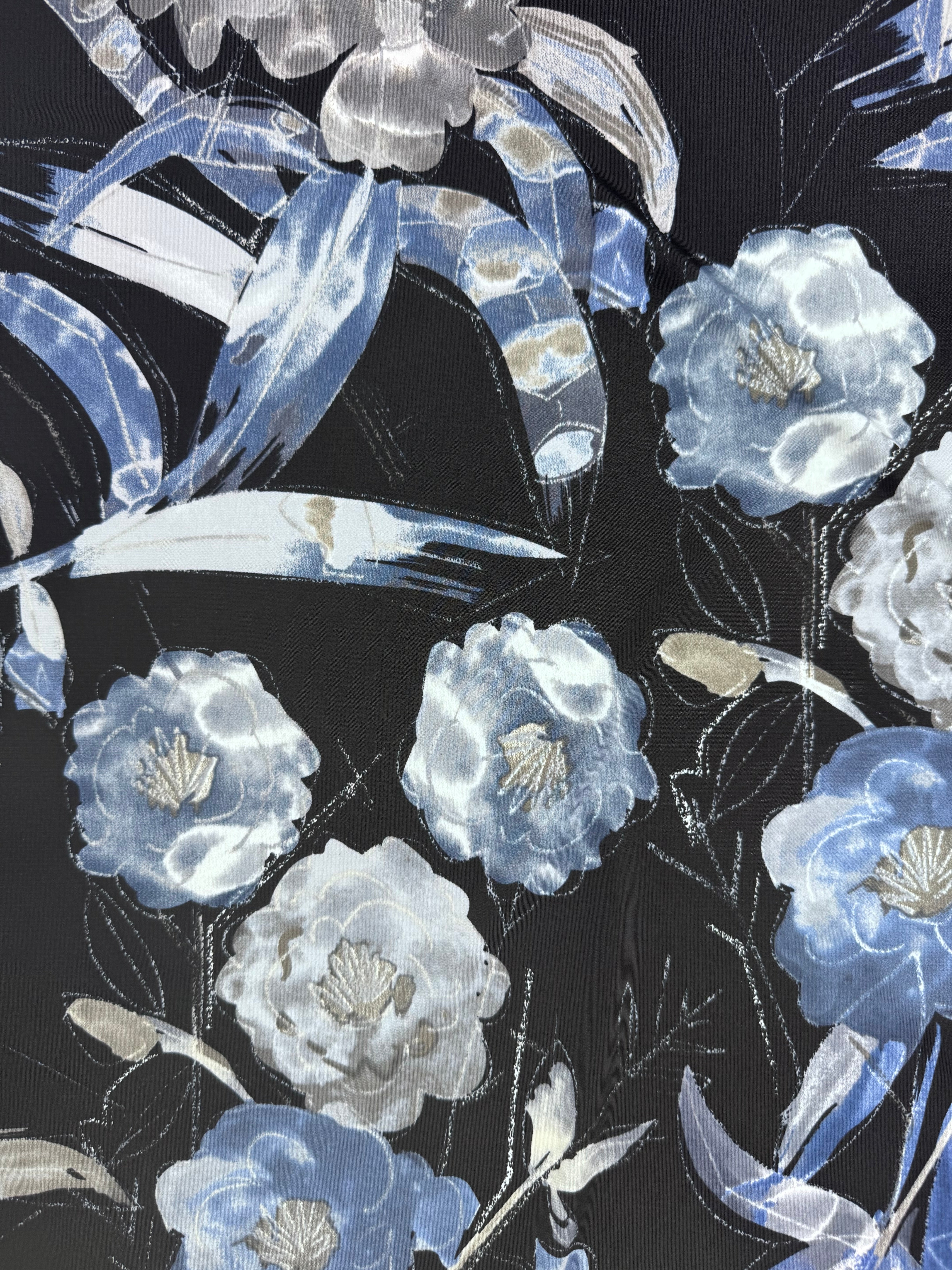 Designer Printed Lycra - Indigo Sakura - 150cm