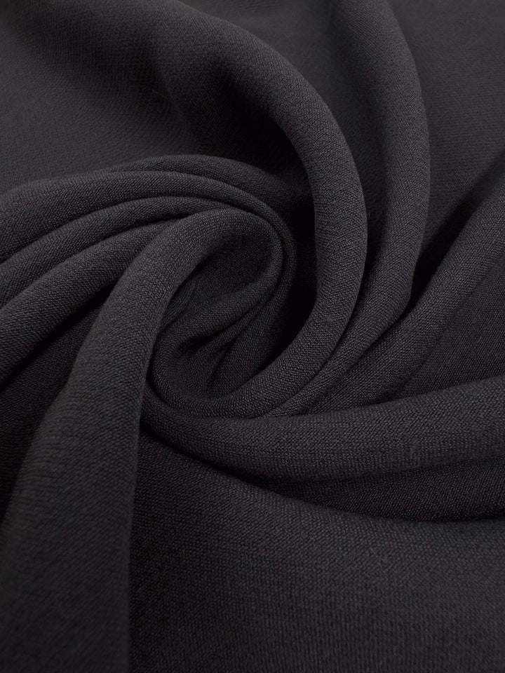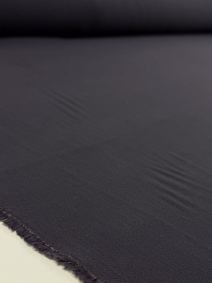 A pure linen crepe fabric in a deep charcoal/navy with a purple tinge throughout with a soft, fluid drape.