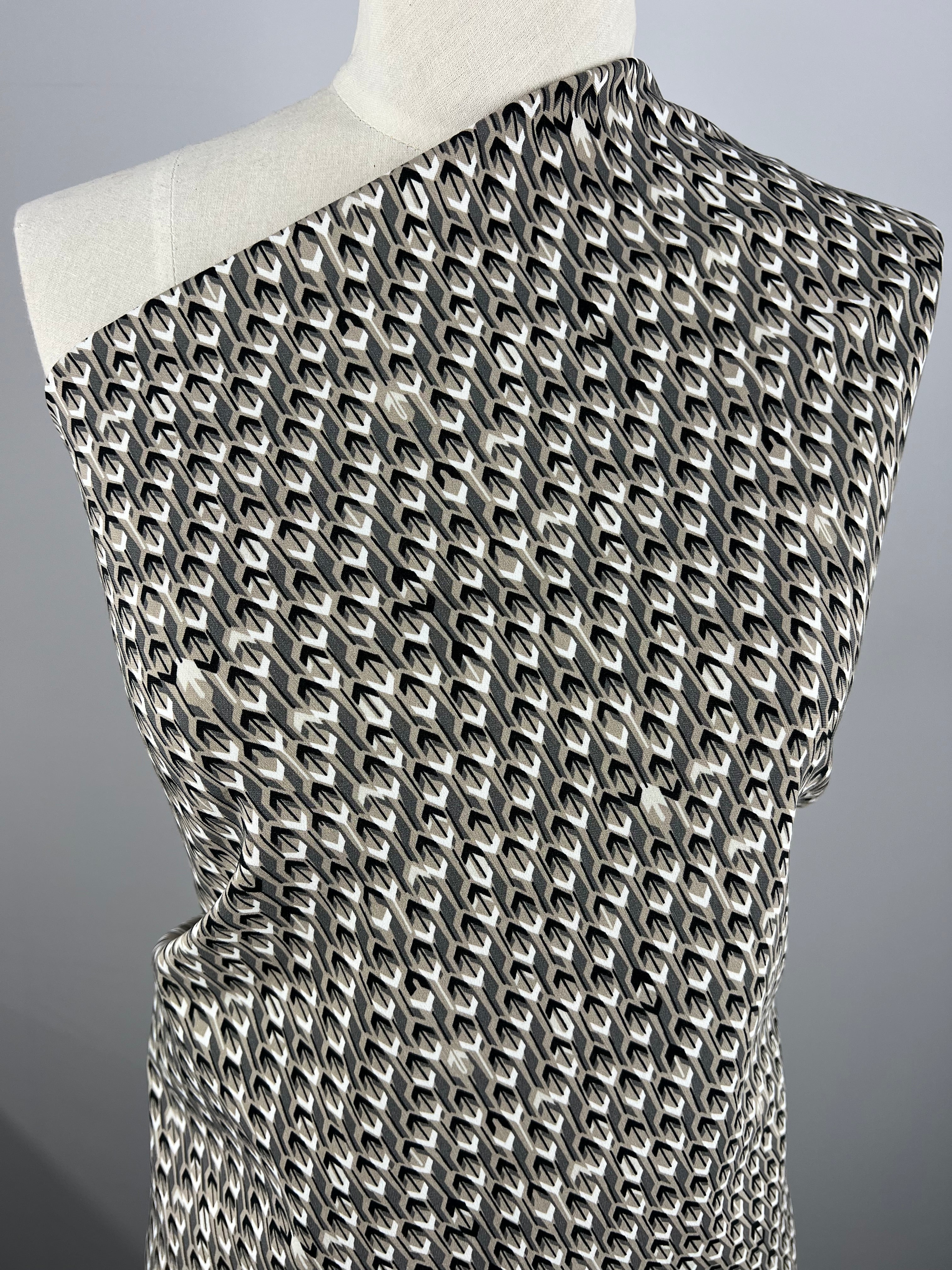 This beautiful stretch bengaline is a two-way stretch woven fabric that is comprised of a variety of different fibers. This medium-weight, stretch fabric is the perfect weight for skirts, dresses, pants, shorts, and jackets.