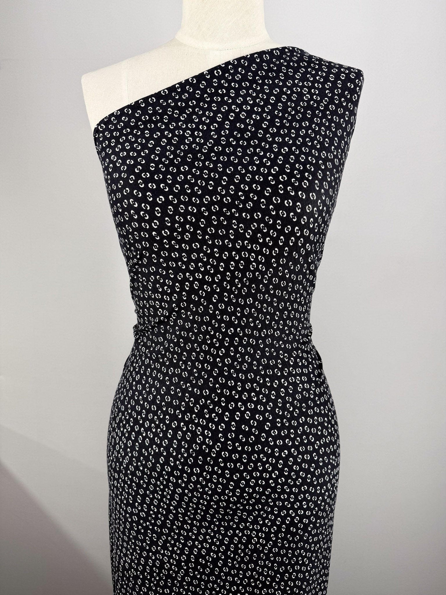 This viscose knit offers excellent performance benefits, with natural breathability that keeps it cool and soft against the skin, making it ideal for summer and seasonal wear. The fabric’s drape provides just the right balance of body and fluidity, giving garments structure while still allowing elegant movement. With 20–30% stretch, it adds comfort and flexibility, making it especially suitable for fitted styles that require ease of wear without compromising on shape.