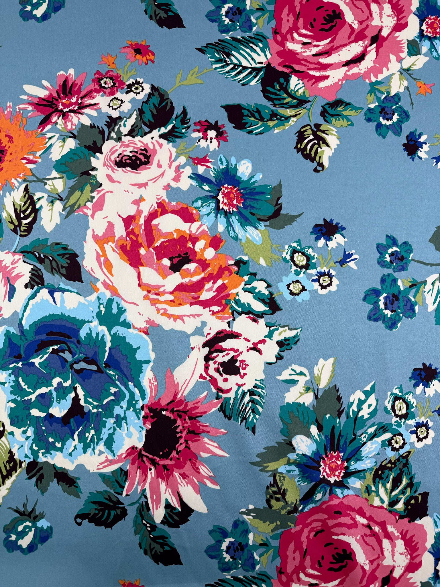 Cotton Sateen - Dusty Blue Foral - 145cm
