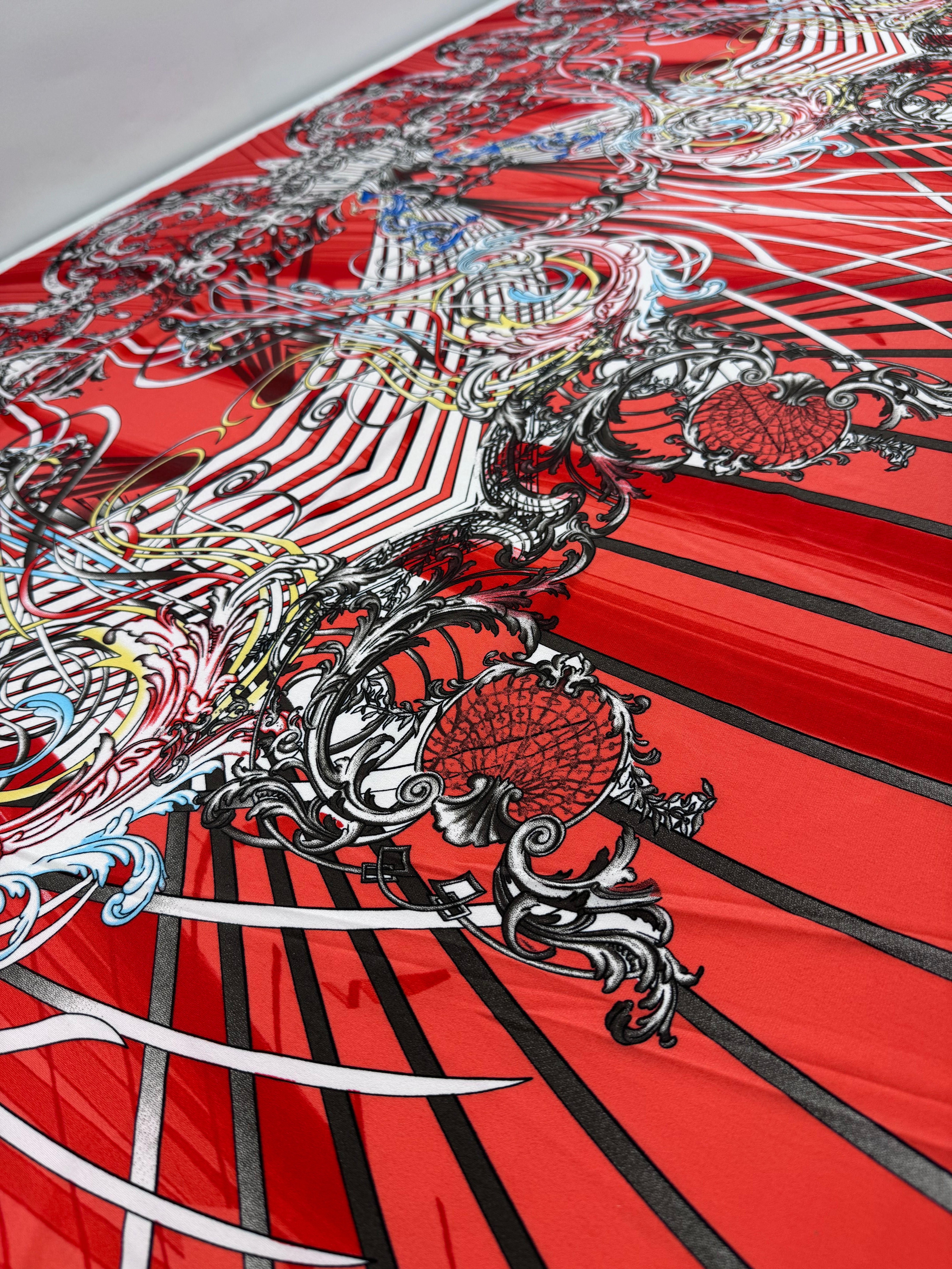 Our Printed Lycra is a Polyester/Spandex fabric that has a two-way stretch and comes in a variety of beautiful prints! Printed Lycra is a medium-weight fabric, has good durability and stretch, and washes well. Our Lycras are perfect for making tops, dresses, skirts, pants, accessories, and even childrenswear.