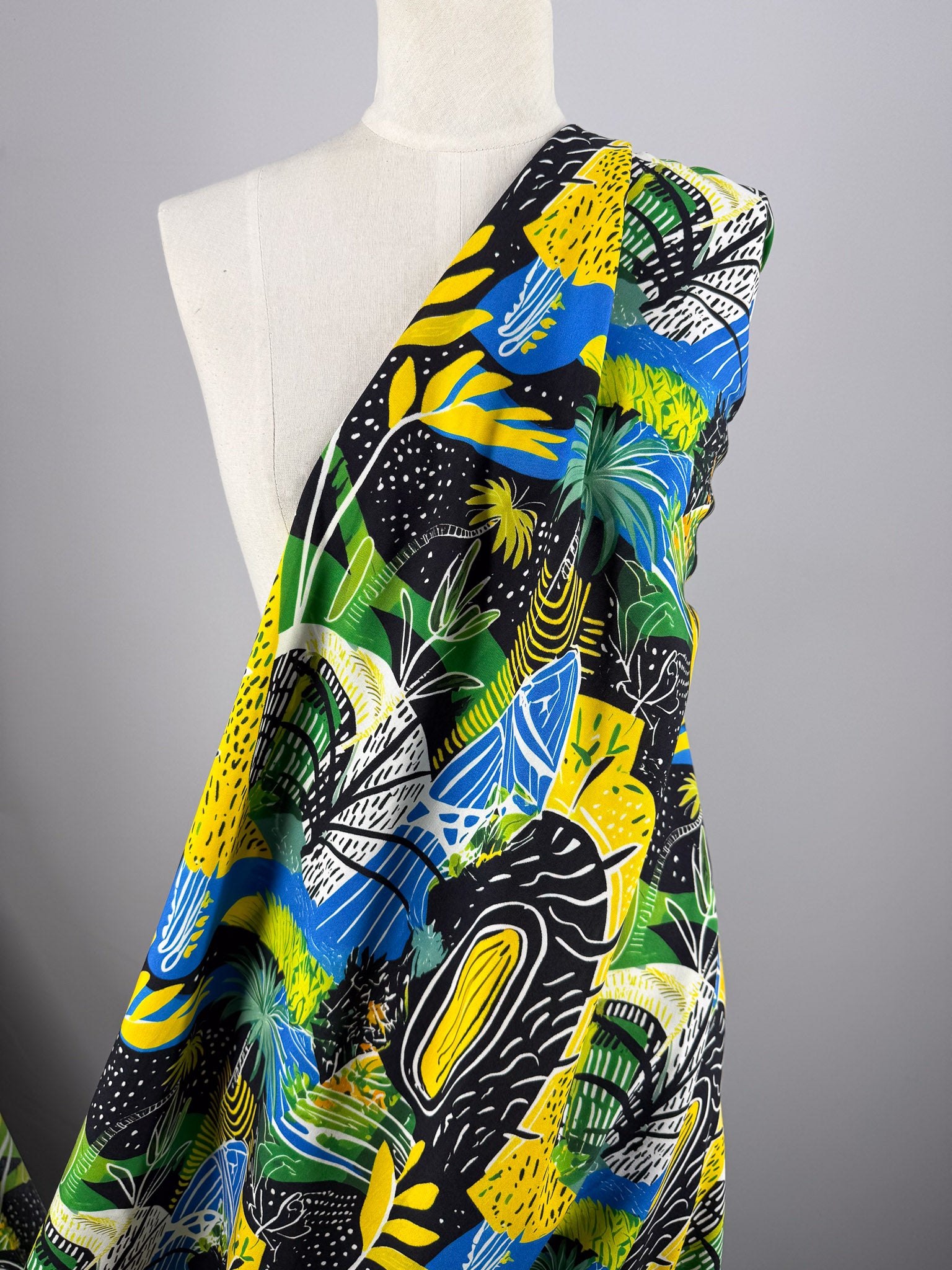 Our Designer Rayon showcases a beautiful and colourful fabric with vibrant prints that can be used for various purposes such as dresses, skirts, blouses, curtains, and more. Our collection showcases a soft, lightweight fabric with a smooth drape and a luxurious feel. Overall, rayon fabric offers both comfort and style, making it a versatile choice for any project.