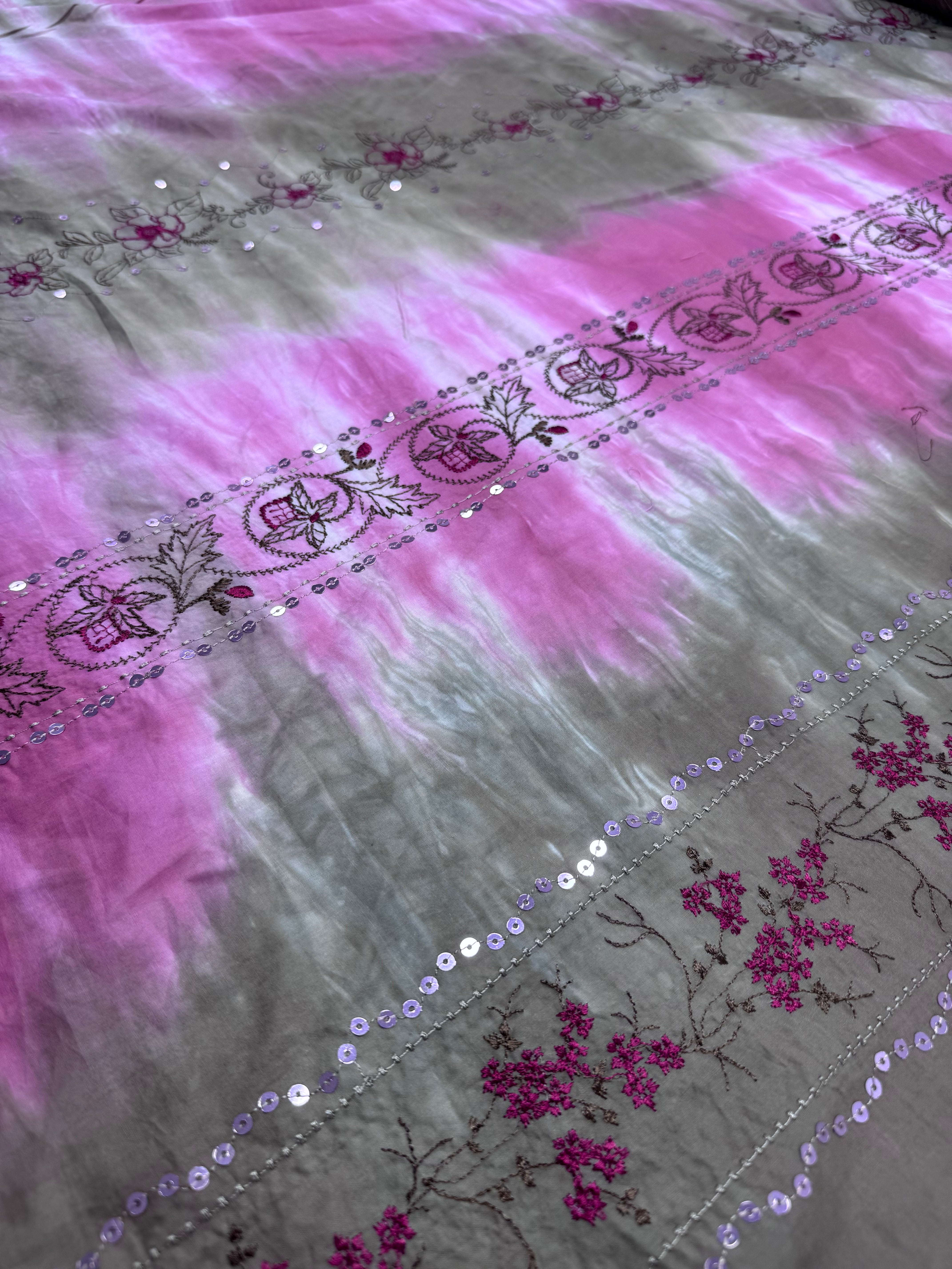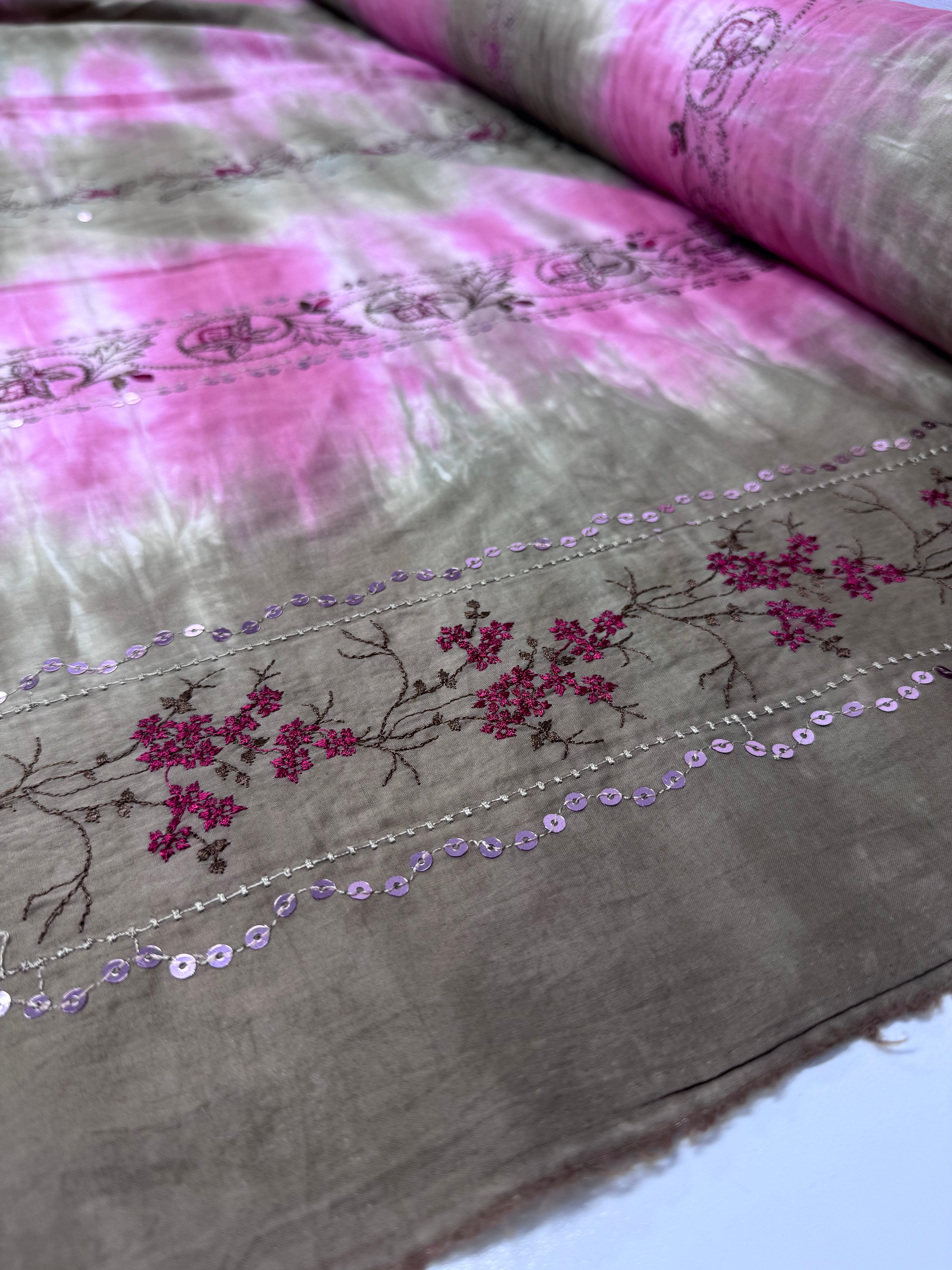 Embroidered Cotton -Pink / Elmwood - 135cm
