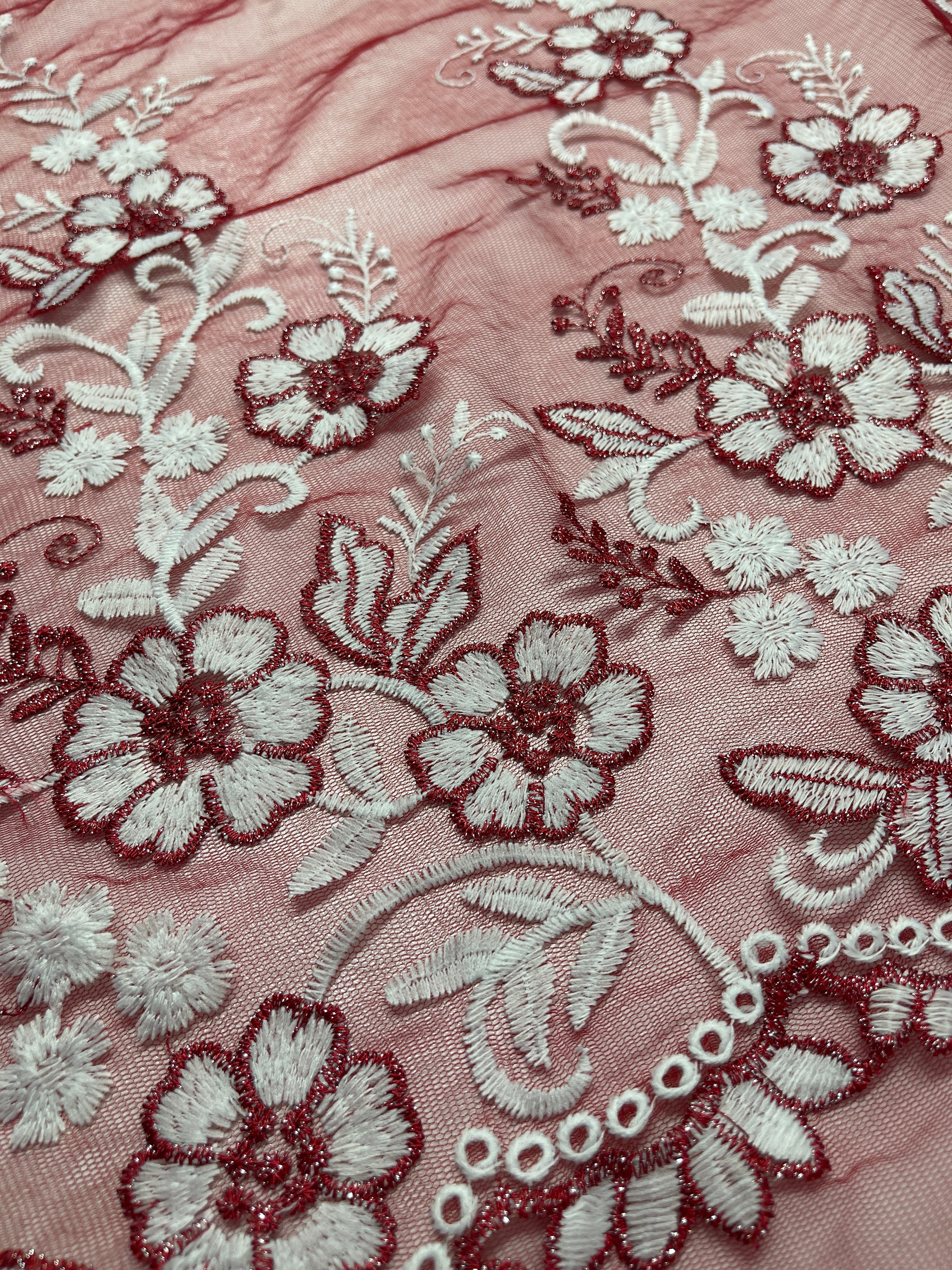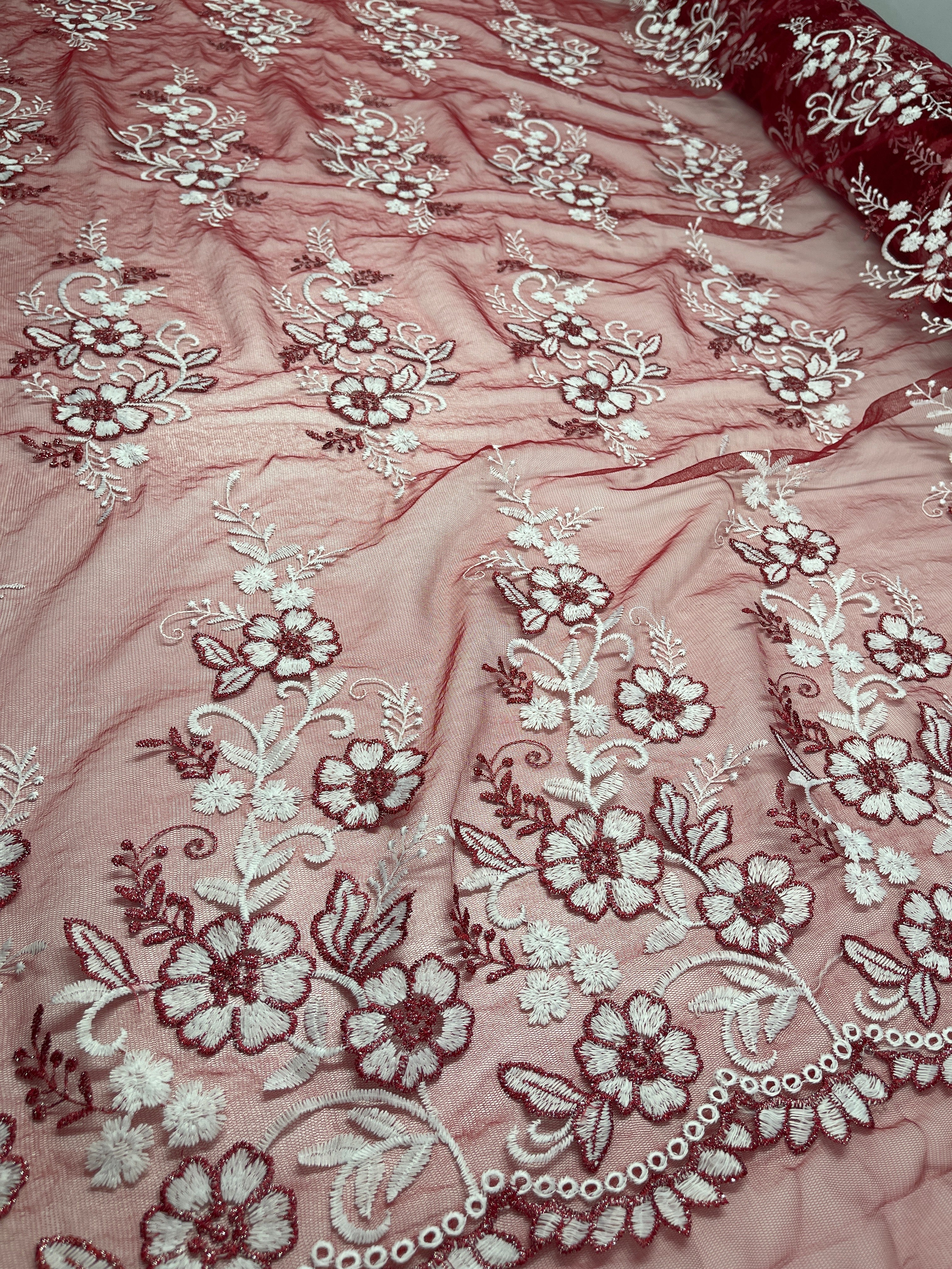 Embroidered Lace - Burgundy - 150cm