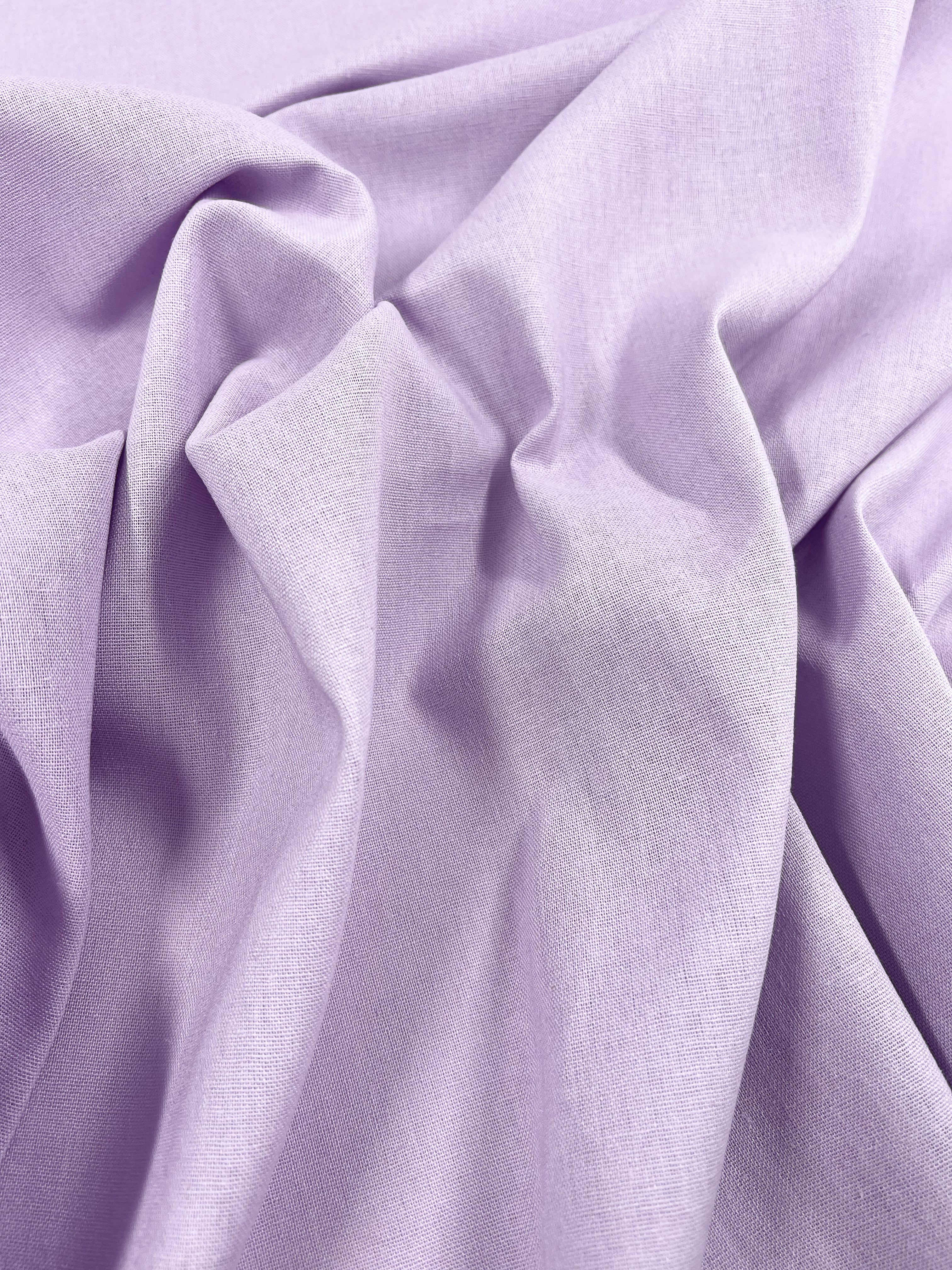 A close-up of a folded piece of Super Cheap Fabrics' Premium Linen Cotton in "Orchid Bouquet," illustrating its texture and weave. The smooth, tightly woven surface of the 140cm fabric creates delicate shadows with its visible folds, invoking the elegance of an orchid bouquet.