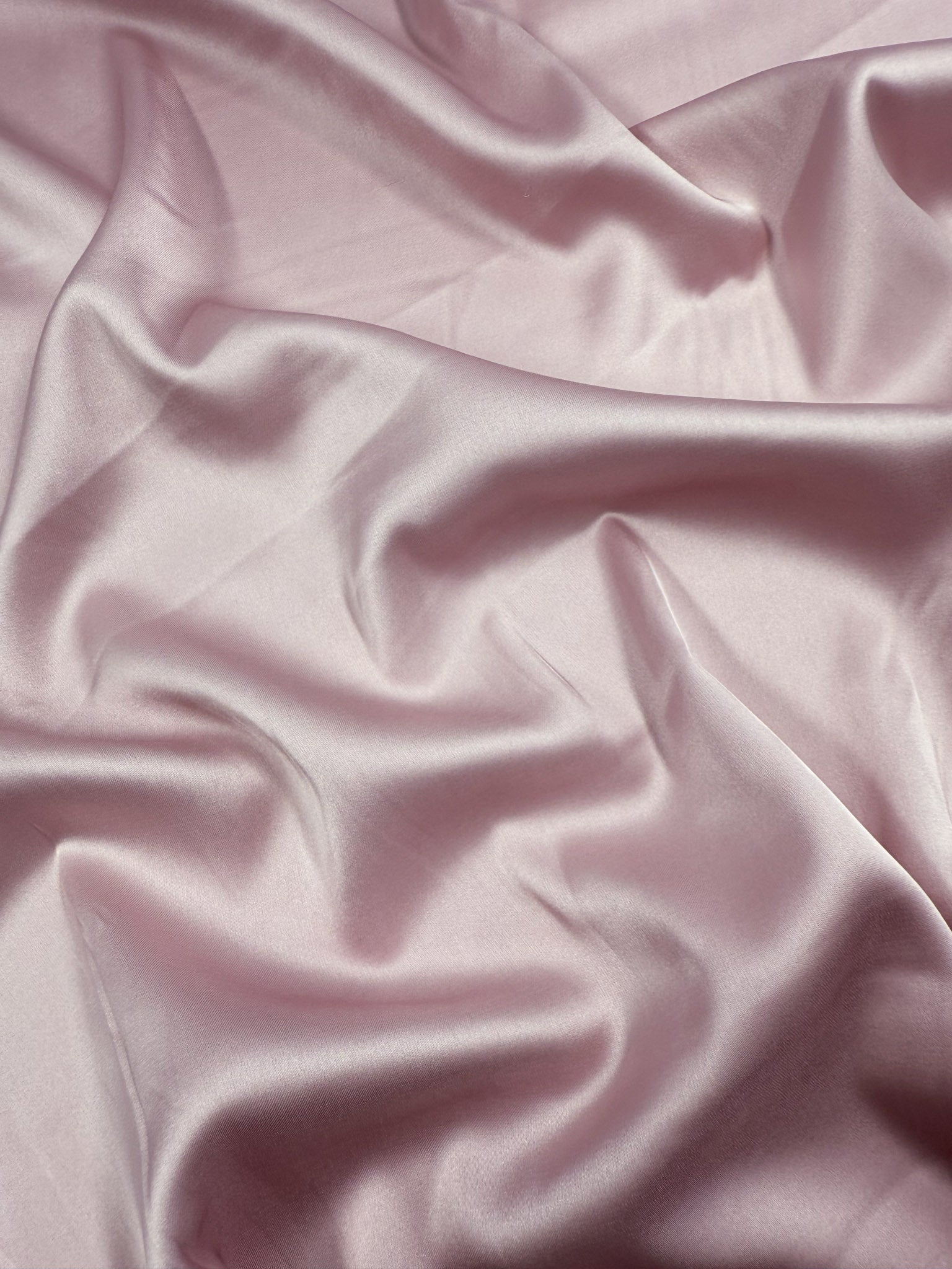A matte, luxury fabric often used for nightgowns. Satin refers to the weave, not the textile, and most fabrics characterised as satin have a soft, shiny yet matte finish. No spandex however this satin has some give.
