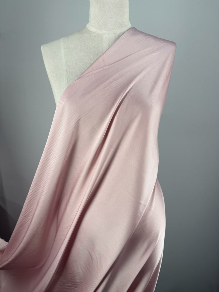 Satin Back Crepe Gentle Machine Wash in cold water. Wash seperately. Do not soak, bleach or wring dry. Dry away from direct sunlight or heat. Do not tumble dry. Cool iron only. Dry-cleanable. |