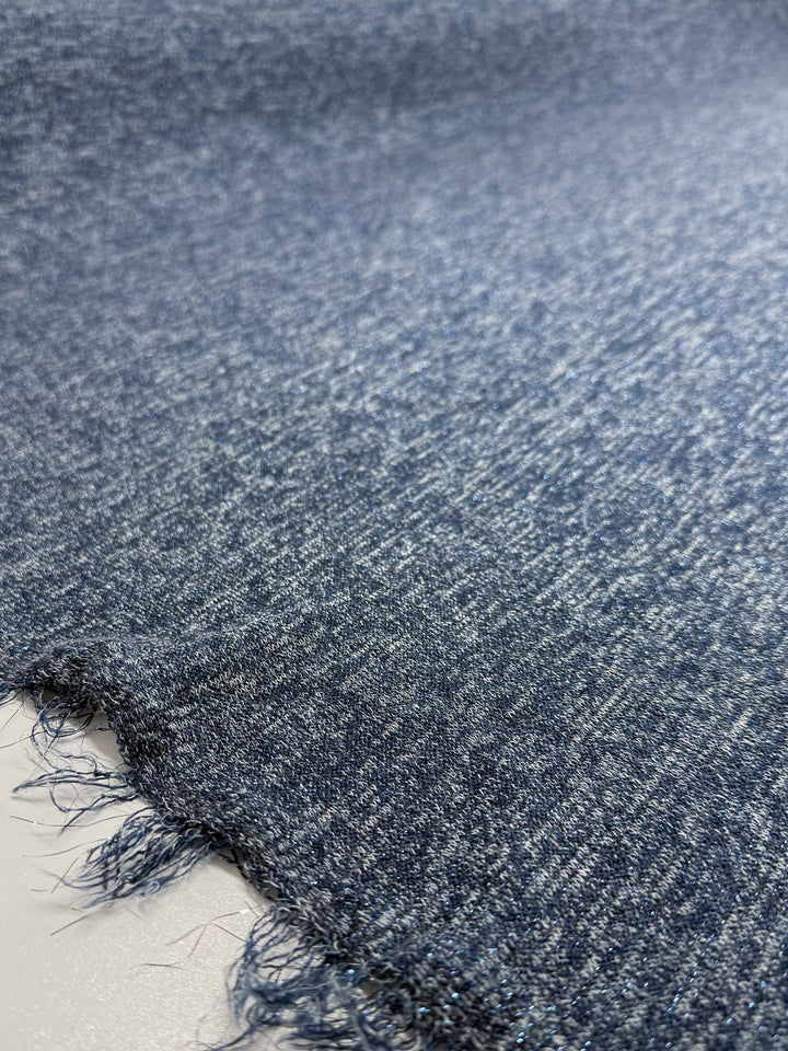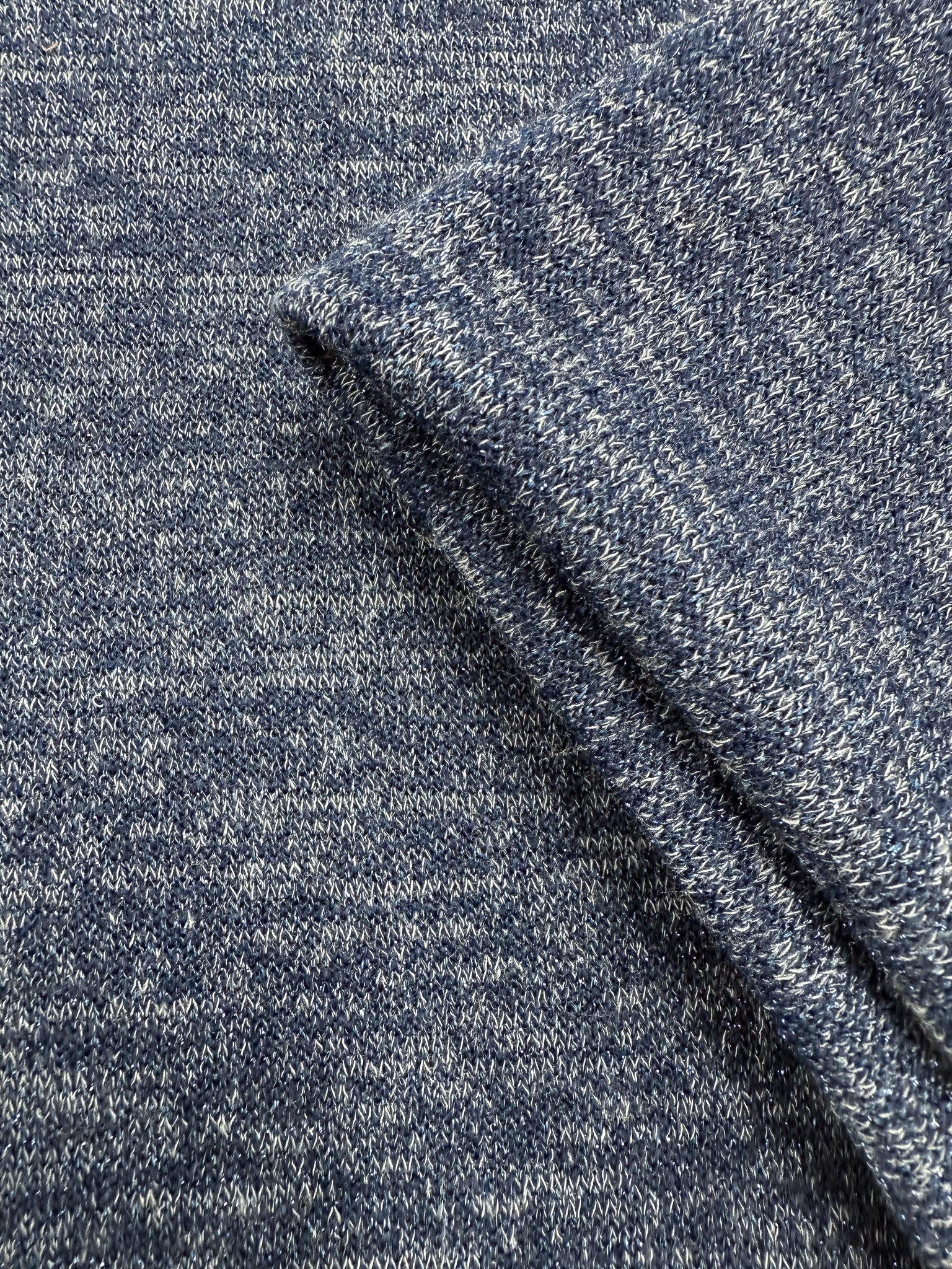 A soft heathered blue lurex knit with a smooth, fluid drape.