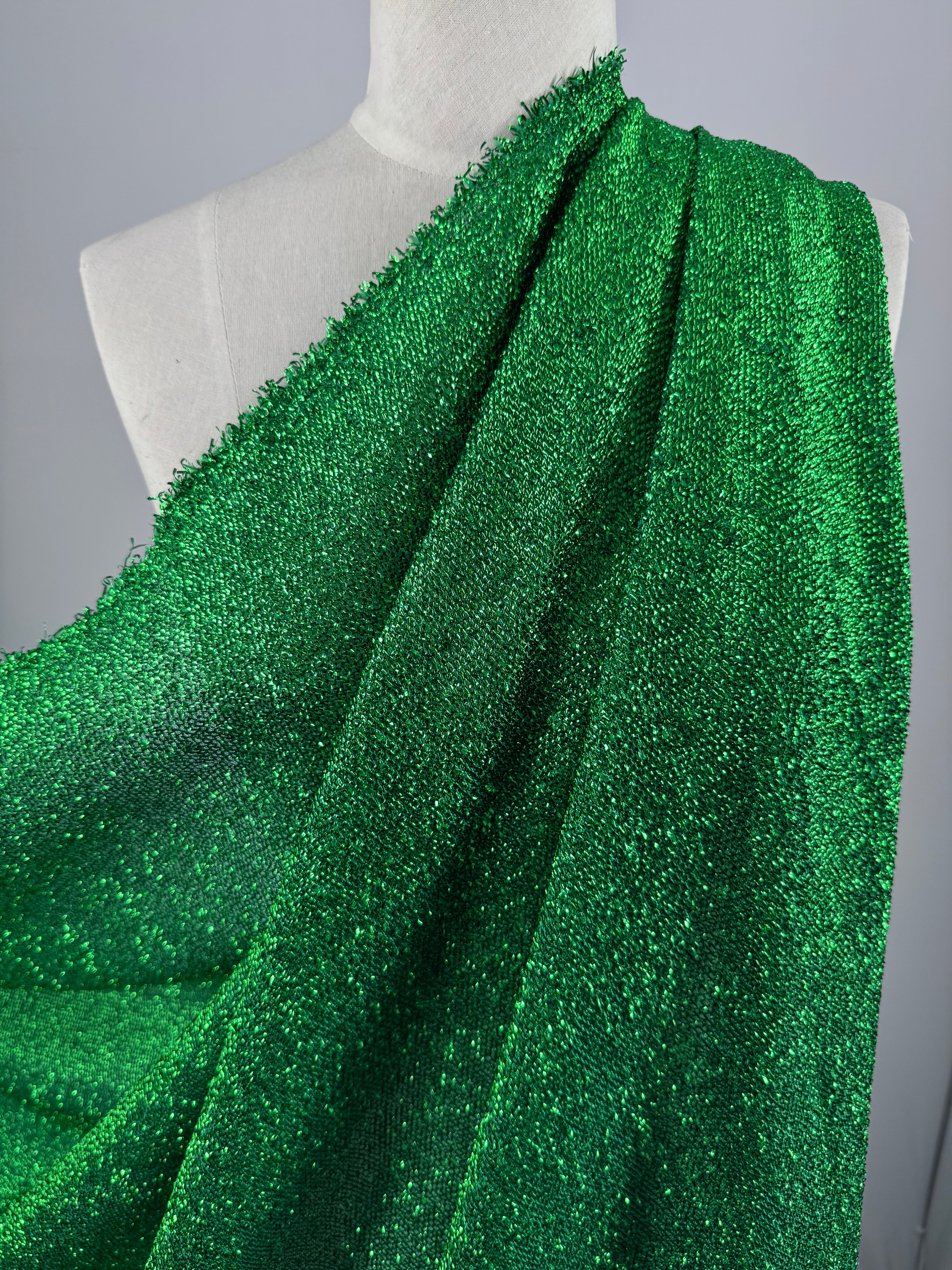 Lurex Stretch Knit - Green Sparkle - 155cm