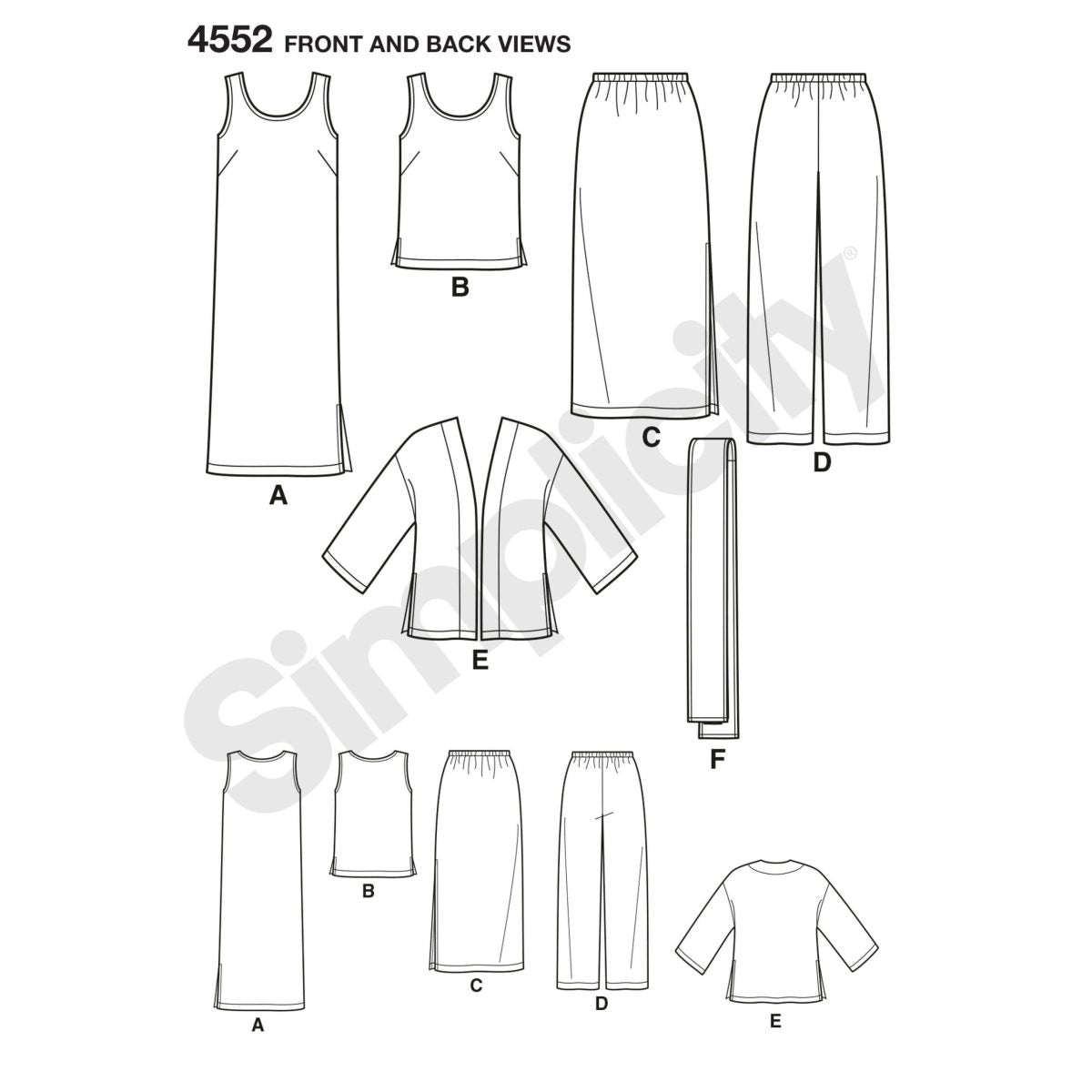 Pattern - Simplicity - S4552 - Misses’ & Plus Size Tank Dress and Top, Kimono-Jacket, Trousers, Skirt, Scarf or Sash