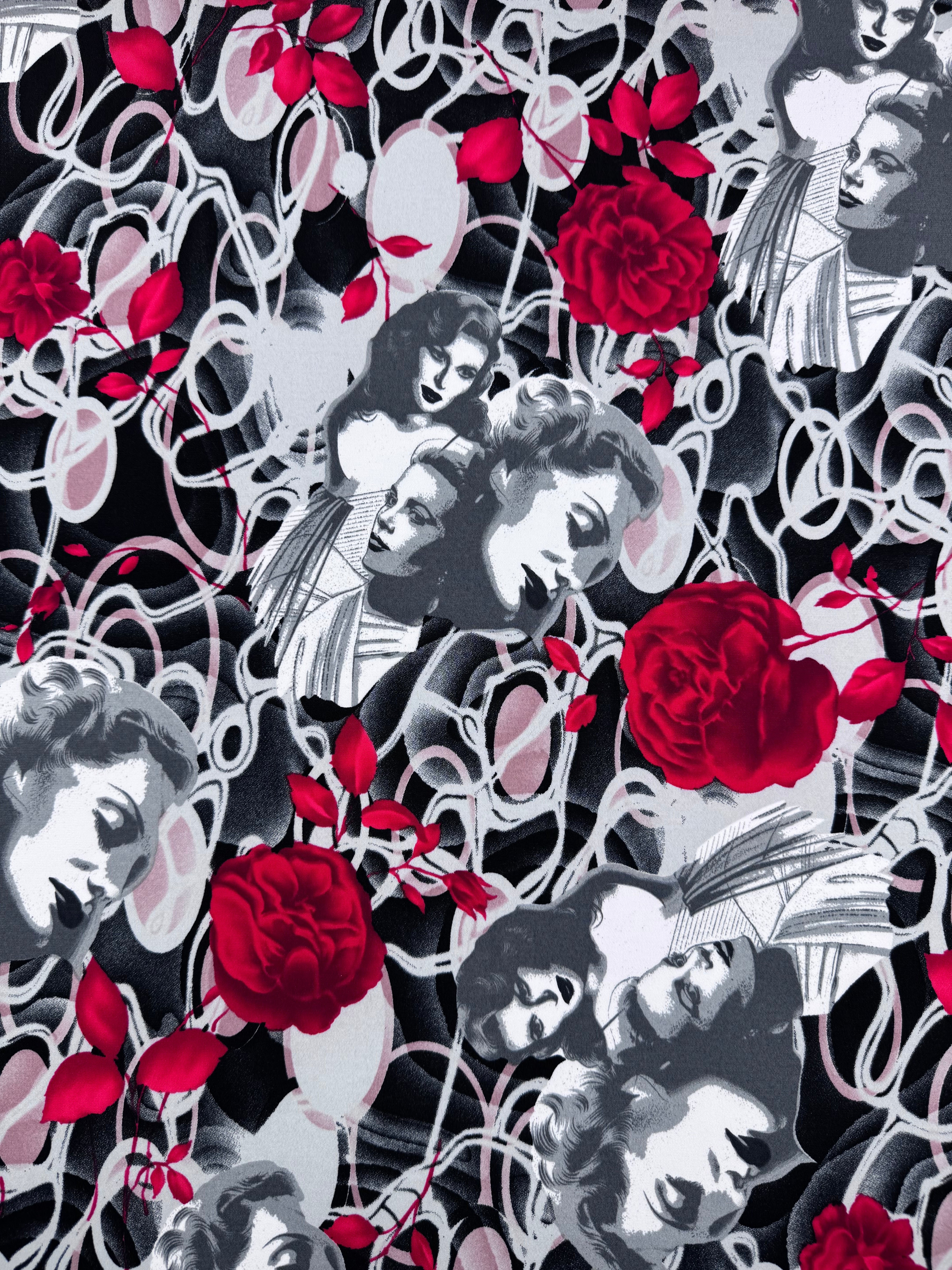 Our Printed Lycra is a Polyester/Spandex fabric that has a two-way stretch and comes in a variety of beautiful prints! Printed Lycra is a medium-weight fabric, has good durability and stretch, and washes well. Our Lycras are perfect for making tops, dresses, skirts, pants, accessories, and even childrenswear.