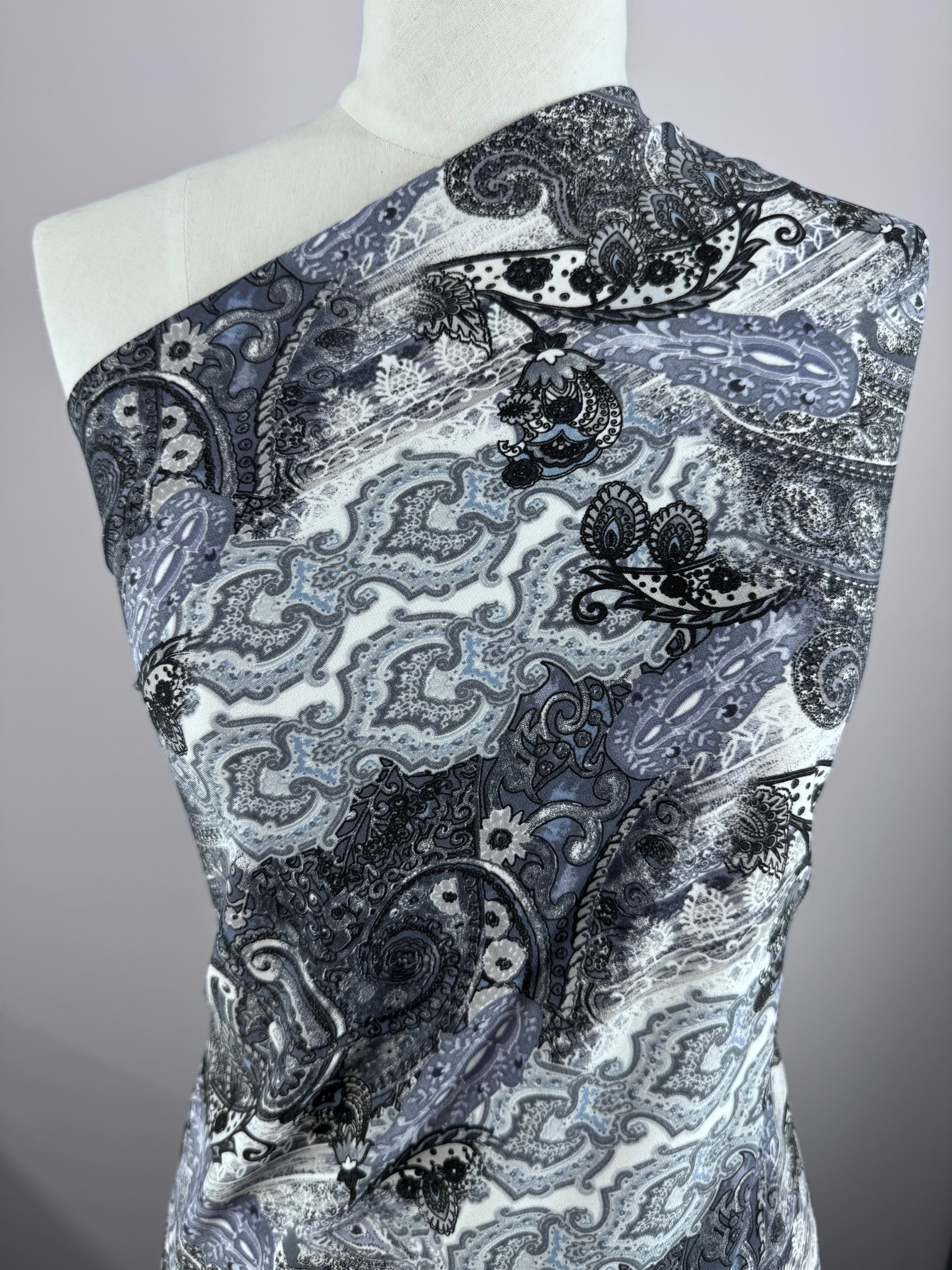 Our Printed Lycra is a Polyester/Spandex fabric that has a two-way stretch and comes in a variety of beautiful prints! Printed Lycra is a medium-weight fabric, has good durability and stretch, and washes well. Our Lycras are perfect for making tops, dresses, skirts, pants, accessories, and even childrenswear.