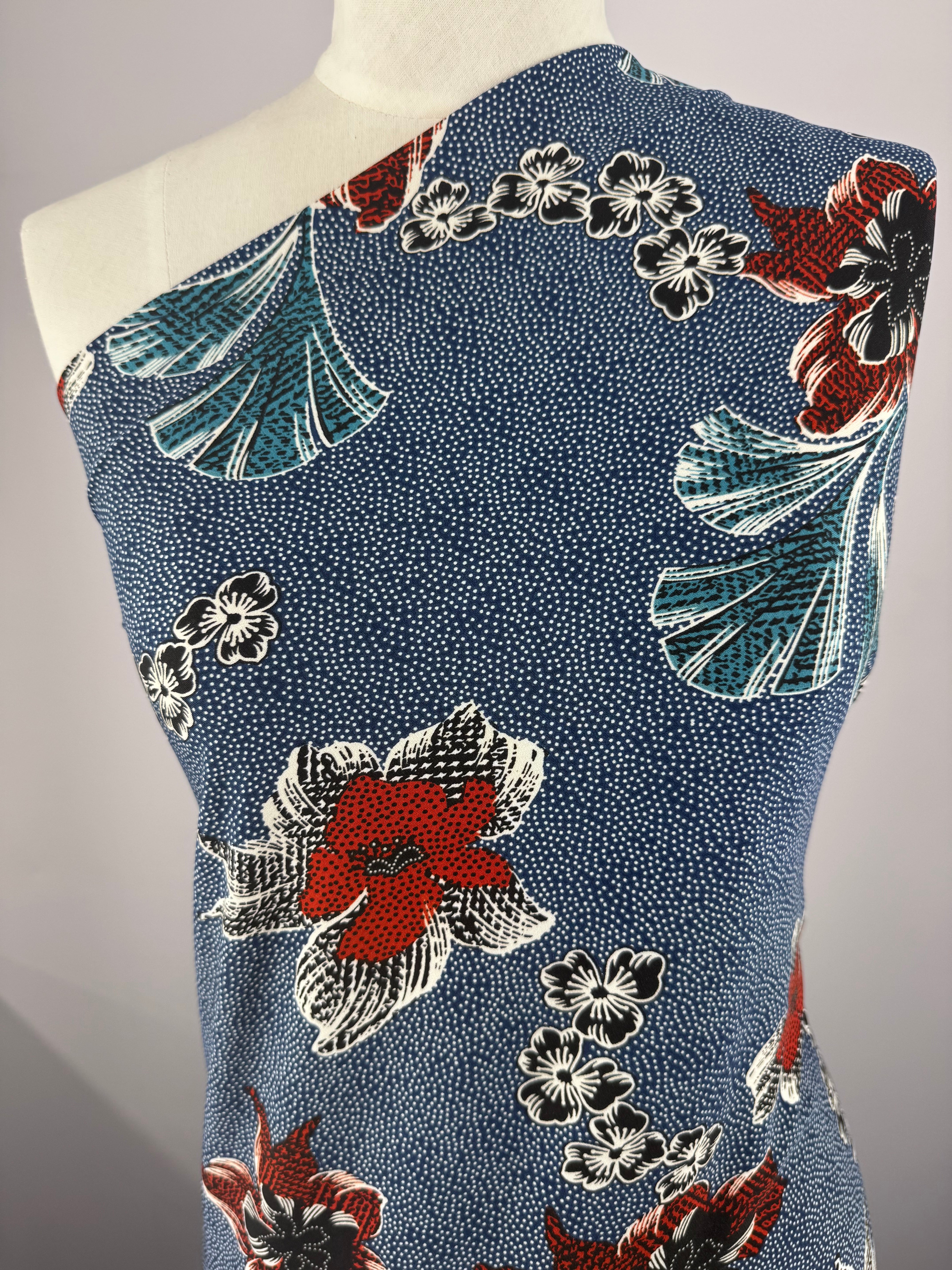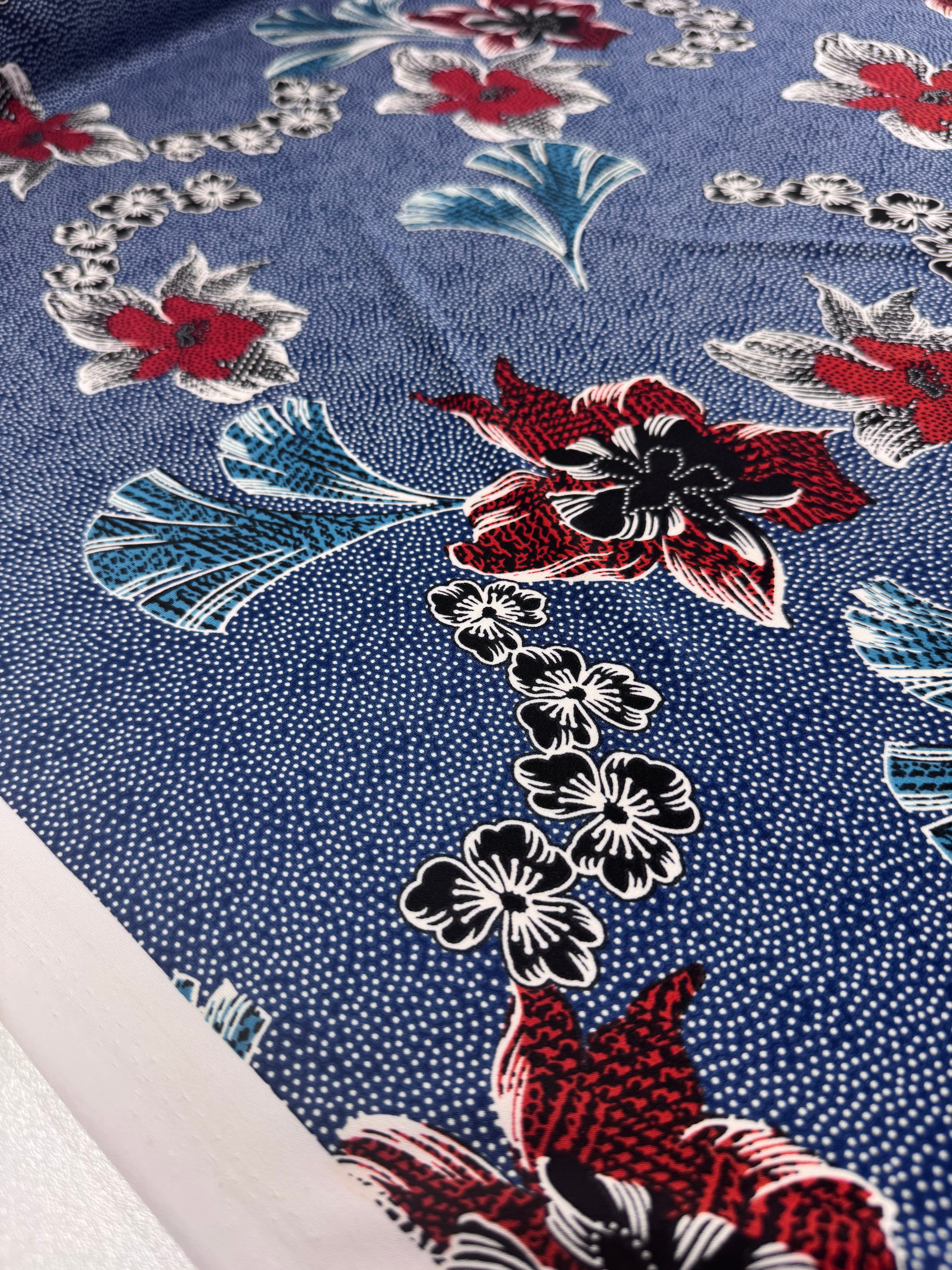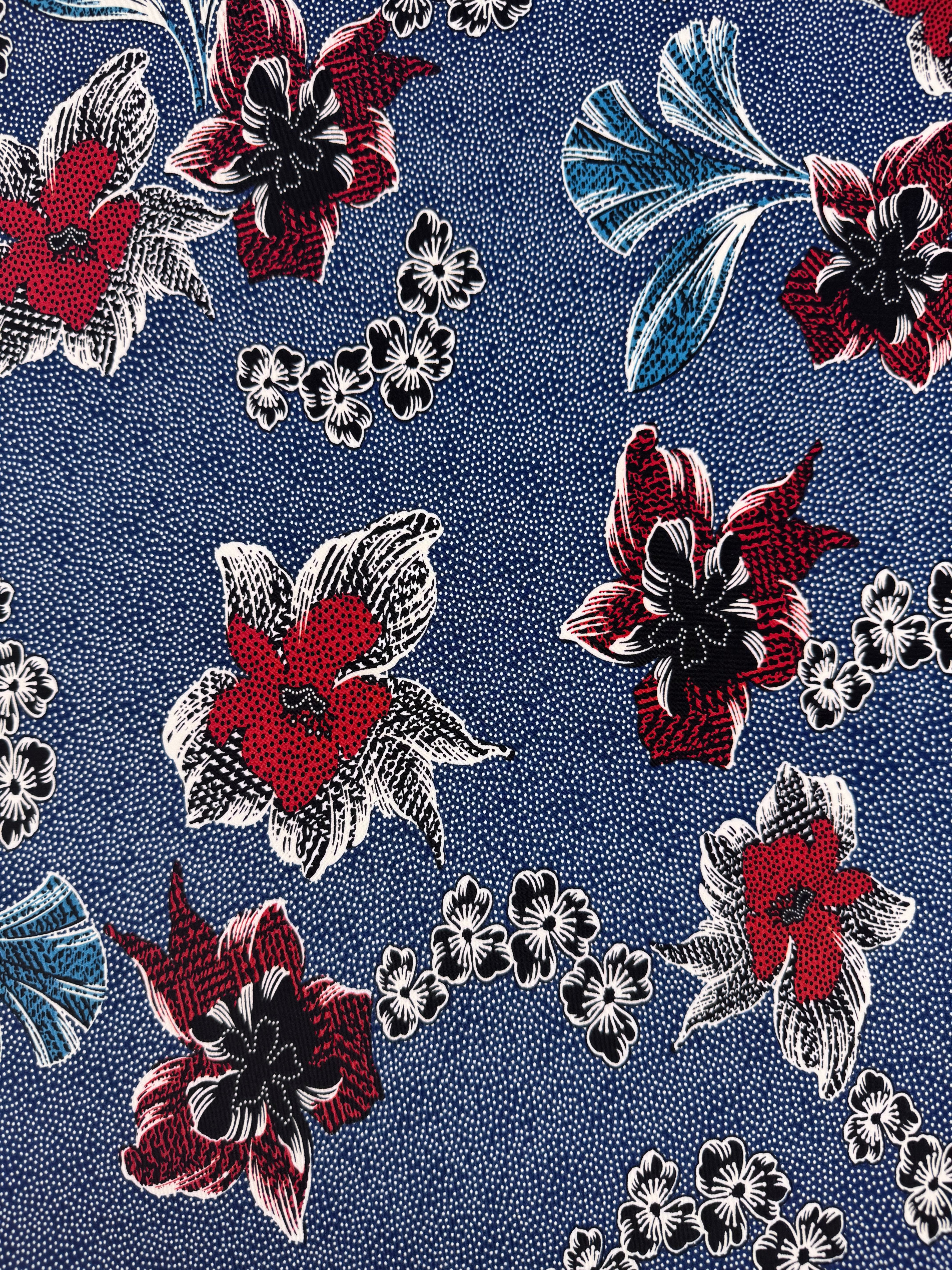 Our Printed Lycra is a Polyester/Spandex fabric that has a two-way stretch and comes in a variety of beautiful prints! Printed Lycra is a medium-weight fabric, has good durability and stretch, and washes well. Our Lycras are perfect for making tops, dresses, skirts, pants, accessories, and even childrenswear.