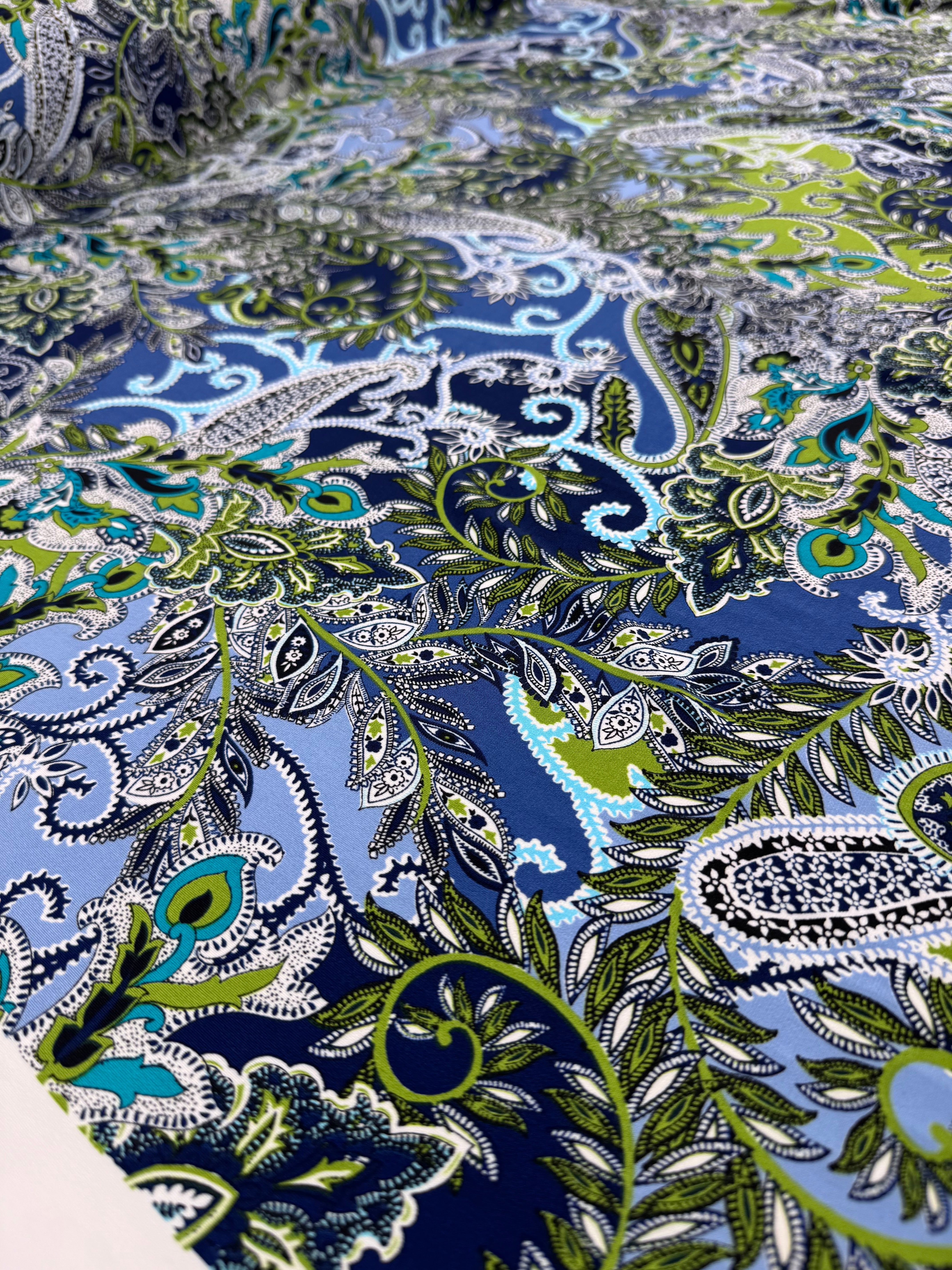 Our Printed Lycra is a Polyester/Spandex fabric that has a two-way stretch and comes in a variety of beautiful prints! Printed Lycra is a medium-weight fabric, has good durability and stretch, and washes well. Our Lycras are perfect for making tops, dresses, skirts, pants, accessories, and even childrenswear.