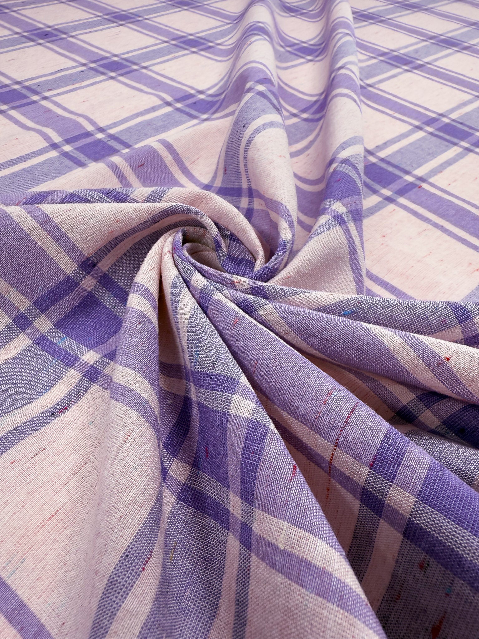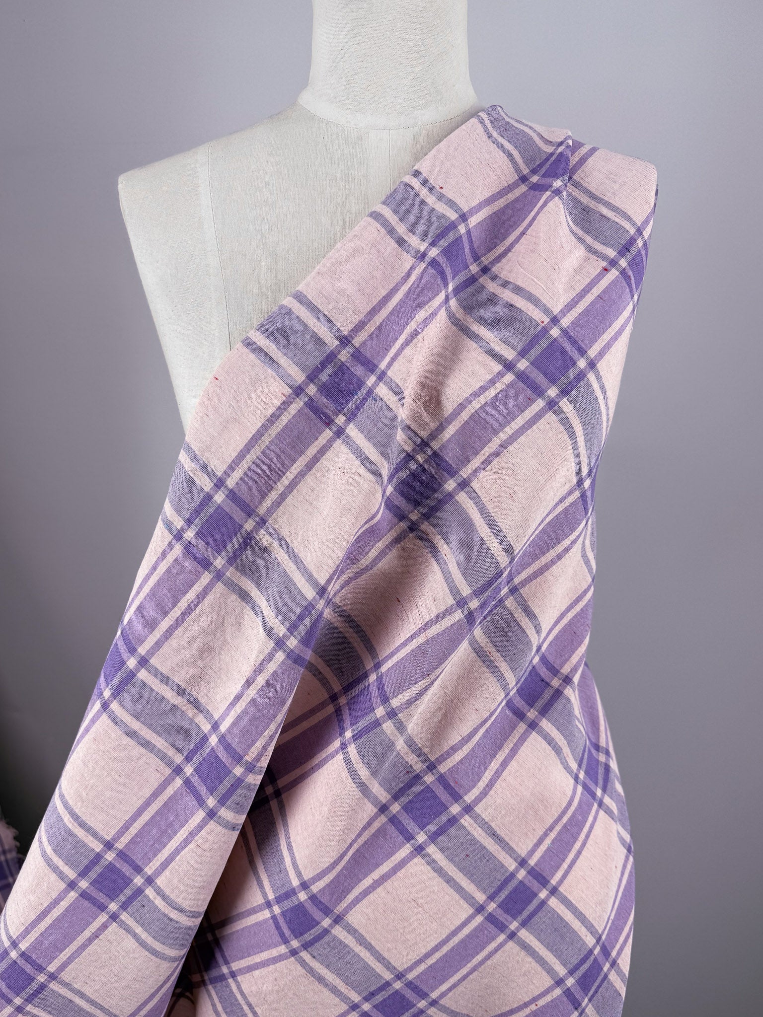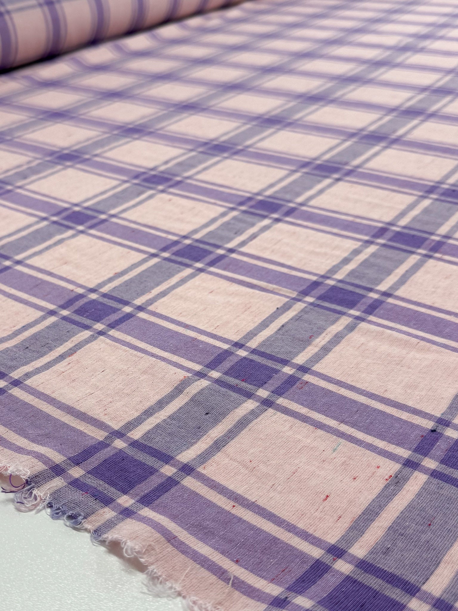 Pure Linen Slub - Lavender Plaid - 152cm