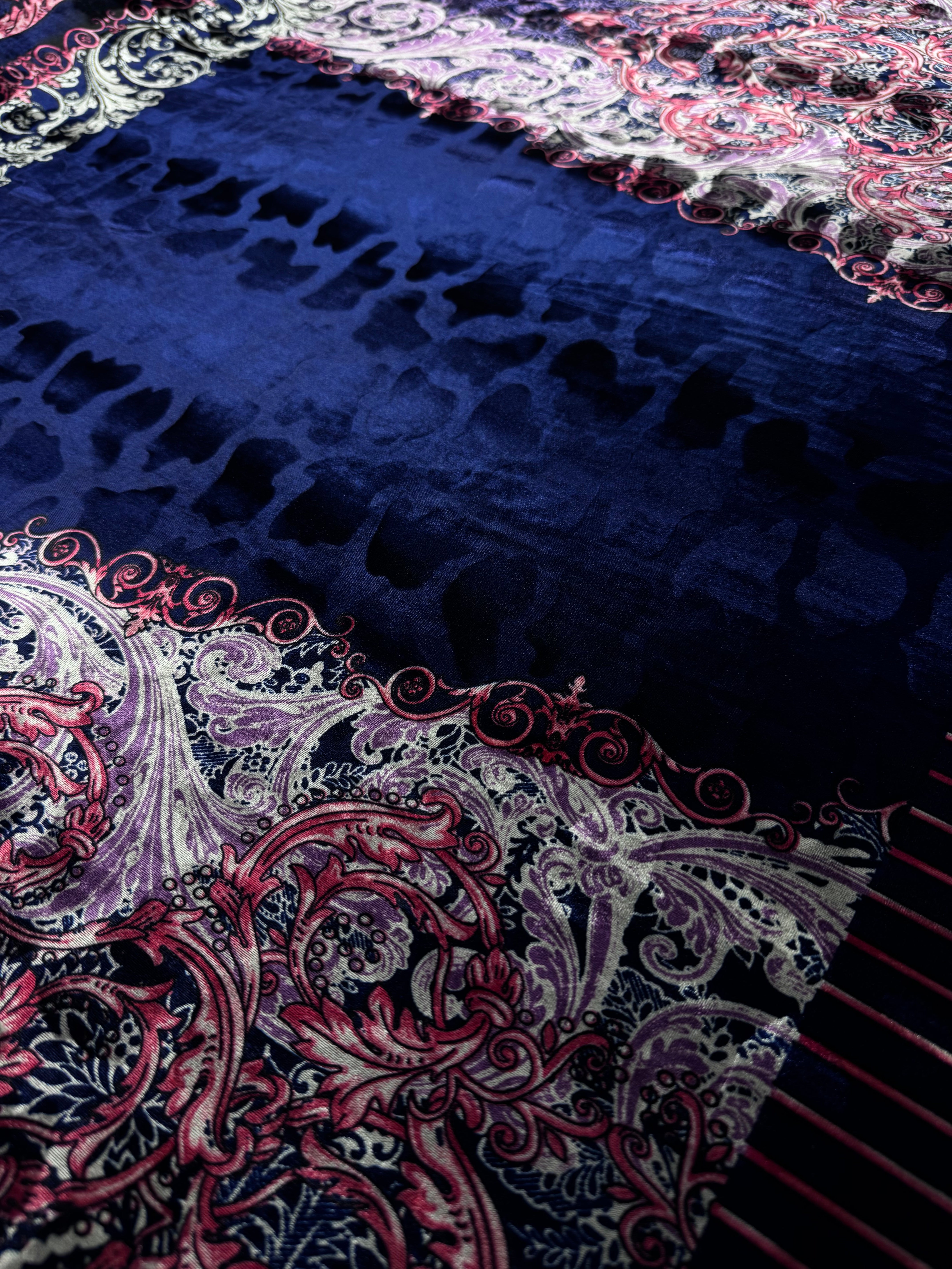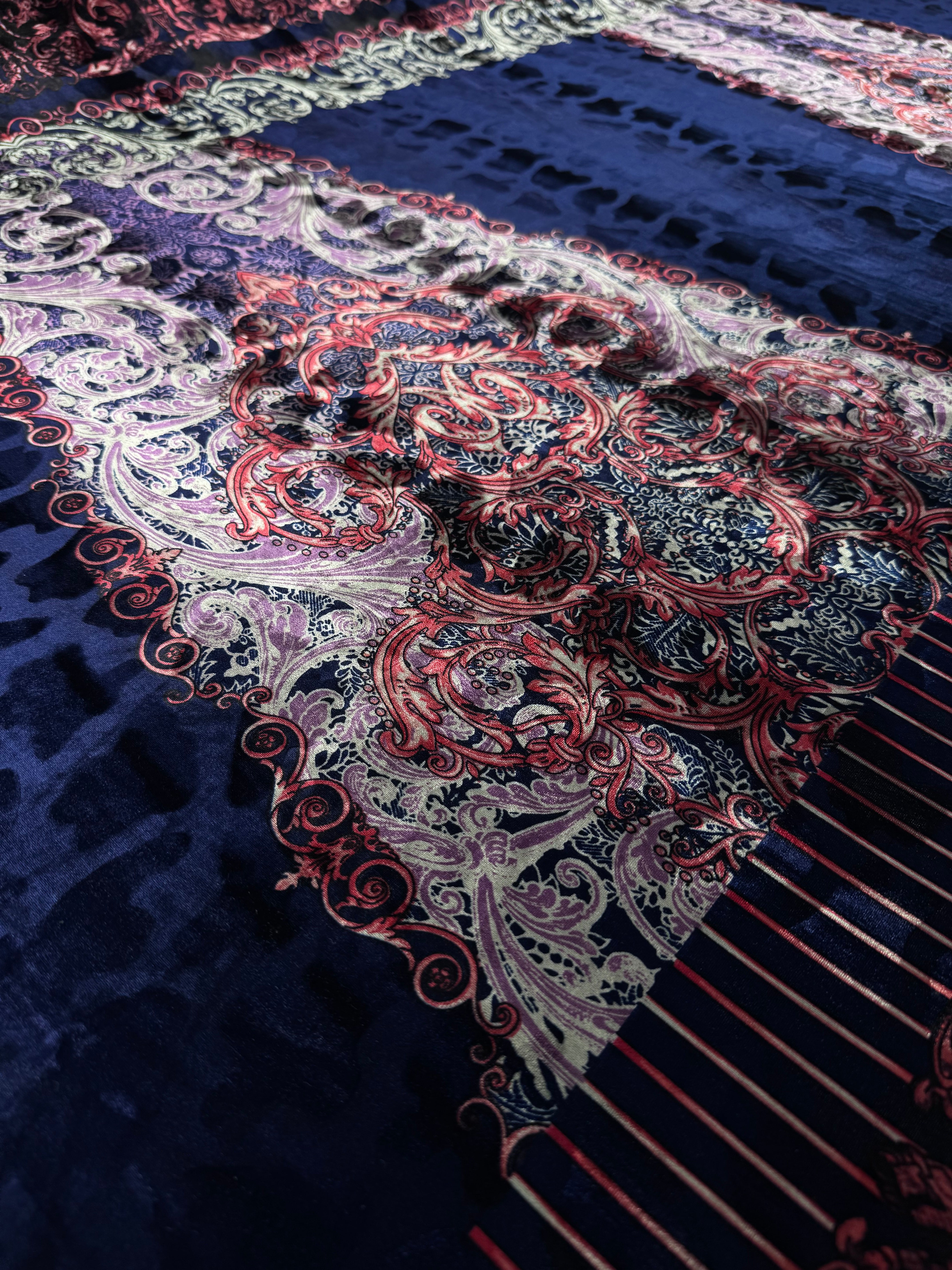 Our Stretch Velour Fabric combines the sumptuous feel of classic velvet with the unmatched flexibility of modern stretch materials, making it an ideal choice for creating garments that require both elegance and mobility. Gorgeous movement, whether you're gliding across a dance floor or simply reaching for a book on the highest shelf. Its rich, deep hues catch the light in a mesmerizing play of texture and color.