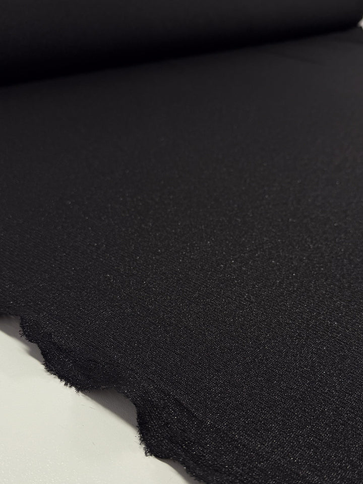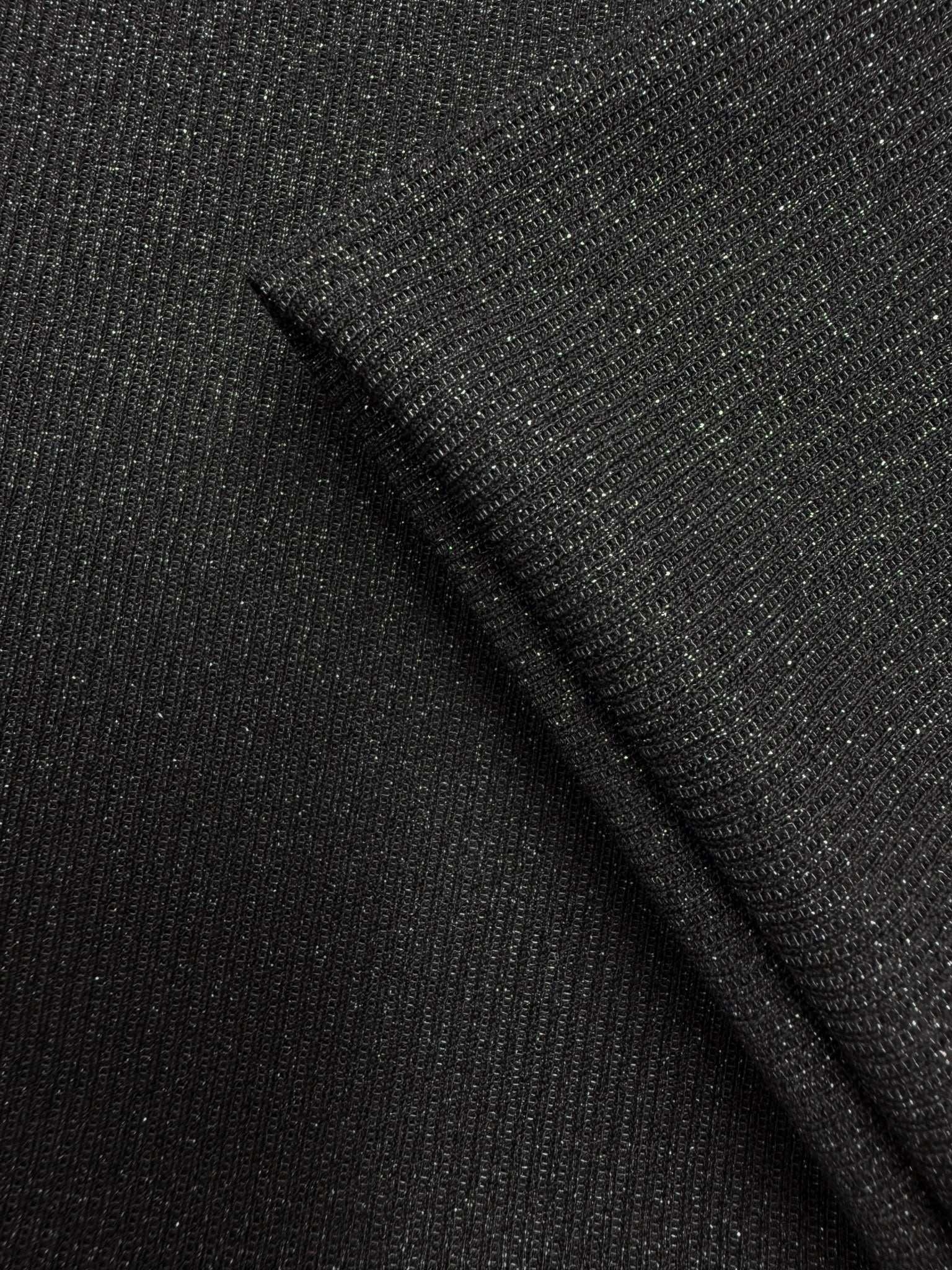 A rich black viscose lurex knit with a soft shimmer and supple drape.