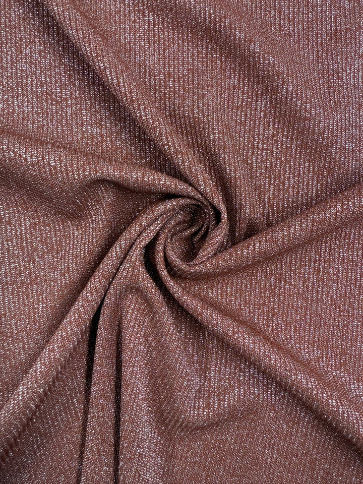 A rich viscose lurex knit with a subtle shimmer and soft, fluid drape. Lightweight and comfortable, this ribbed Knit is ideal for elegant tops, dresses, and relaxed eveningwear.