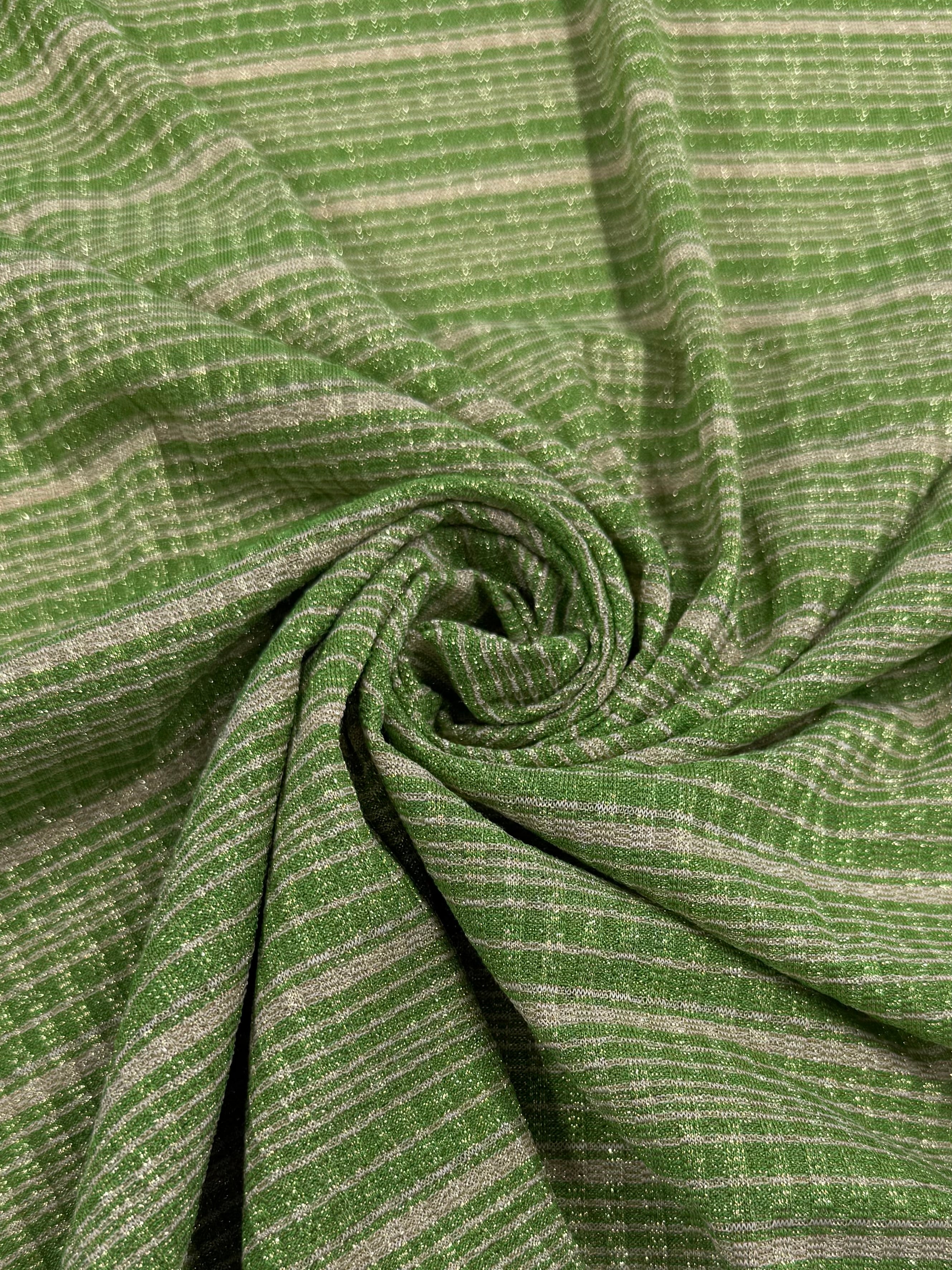 A rich viscose lurex knit with a subtle shimmer and soft, fluid drape. Lightweight and comfortable, this ribbed Knit is ideal for elegant tops, dresses, and relaxed eveningwear.